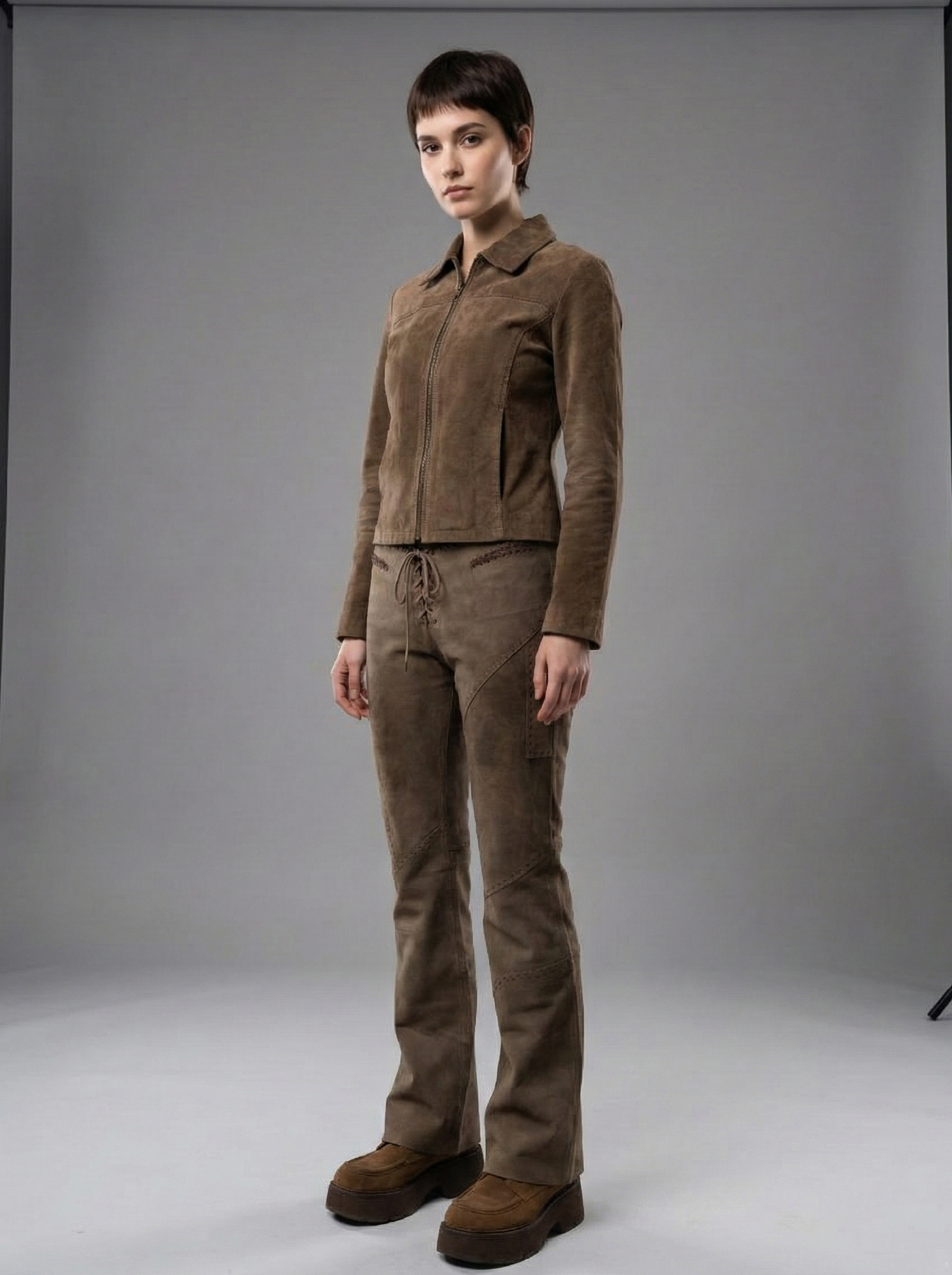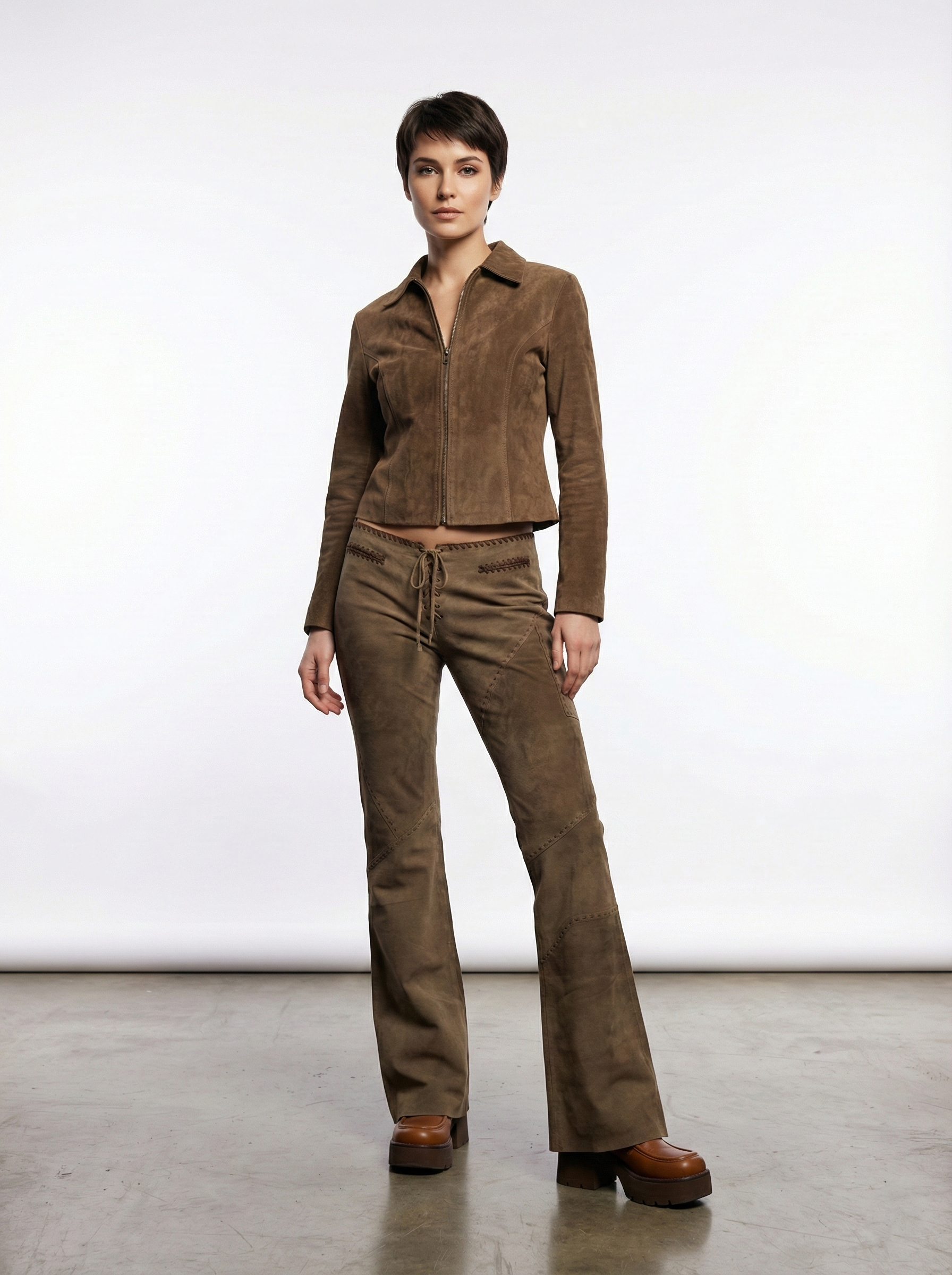 Жіночі замшеві брюки кльош - Коричневий