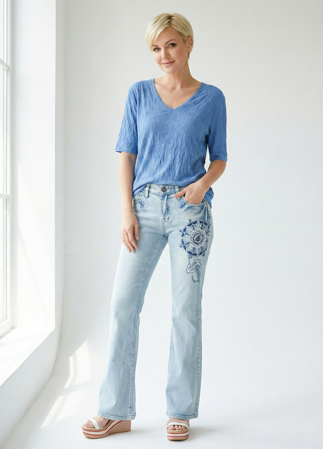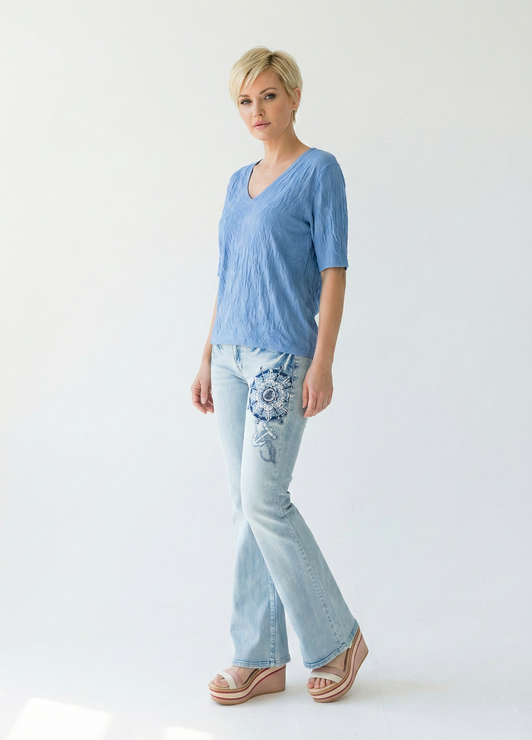 Блакитні демісезонні джинси з морською вишивкою звучать як цікавий та стильний варіант для вашого гардеробу. Джинси в блакитному кольорі є класичними та універсальними, а морська вишивка додасть їм особливий морський чи морський тематики акцент. Ви можете поєднувати блакитні демісезонні джинси з морською вишивкою з різним верхнім одягом та взуттям. Вони добре поєднуються з футболками у морському стилі, поло, сорочками або навіть із джинсовими куртками. Залежно від вашого стилю та уподобань, ви можете створити як повсякденне, так і стильніше вбрання.