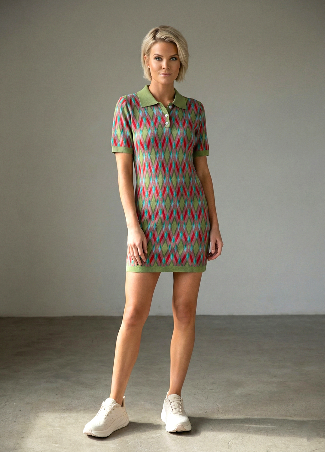 Літня сукня-поло в стилі ретро - це ідеальне поєднання спортивної елегантності та вінтажної чарівності. Такий фасон особливо актуальний у літньому сезоні 2025 завдяки своїй універсальності, комфортному крою і нотці ностальгії. Один розмір: об/груди 93см, довжина 92см, рукав 22см, плечі 37см. Така сукня чудово підійде для прогулянок, пікніків, відпустки чи навіть кежуал-офісу – залежно від стилю виконання.