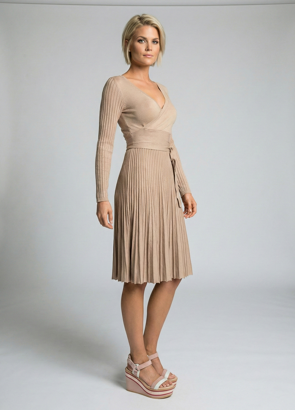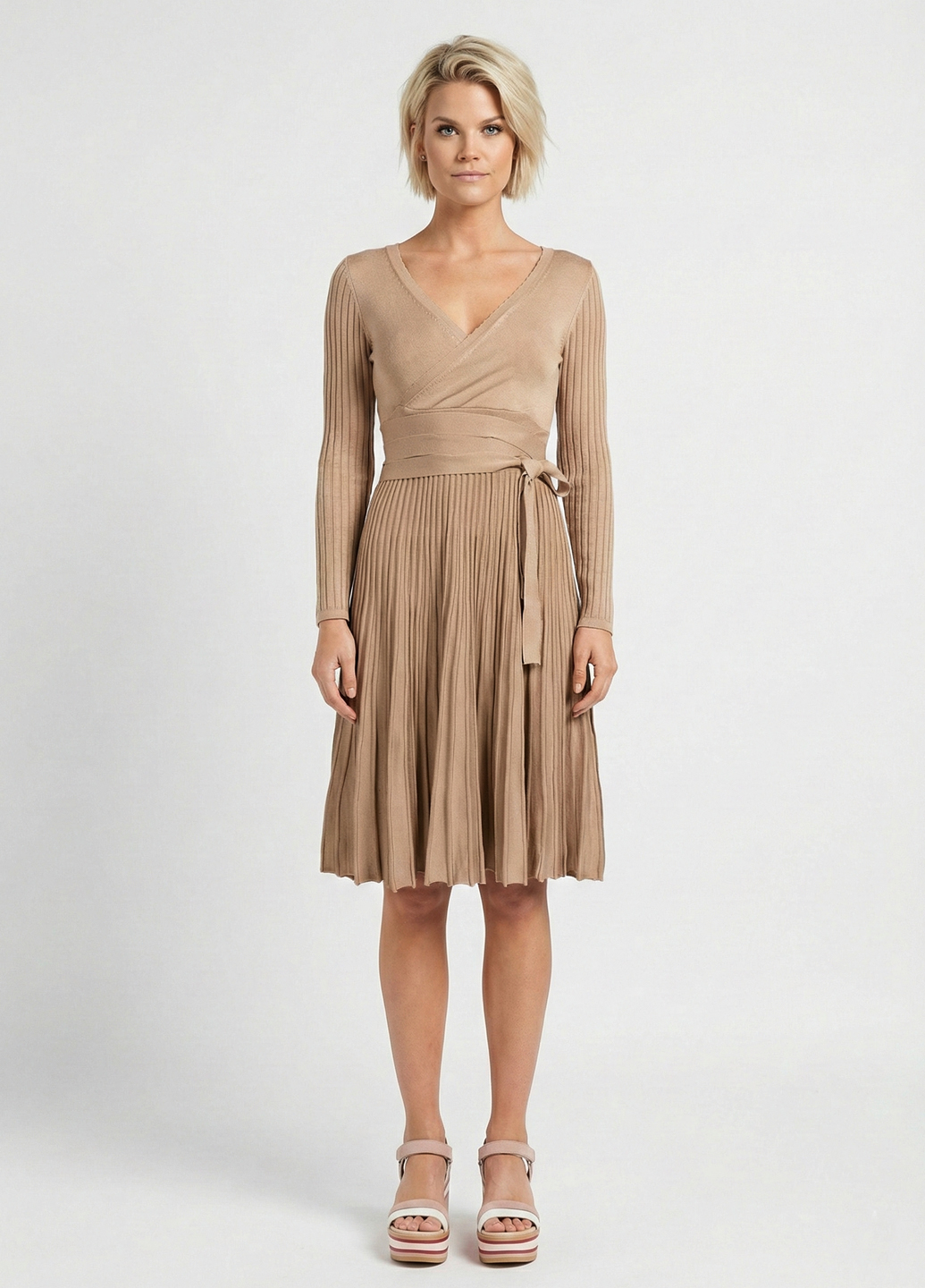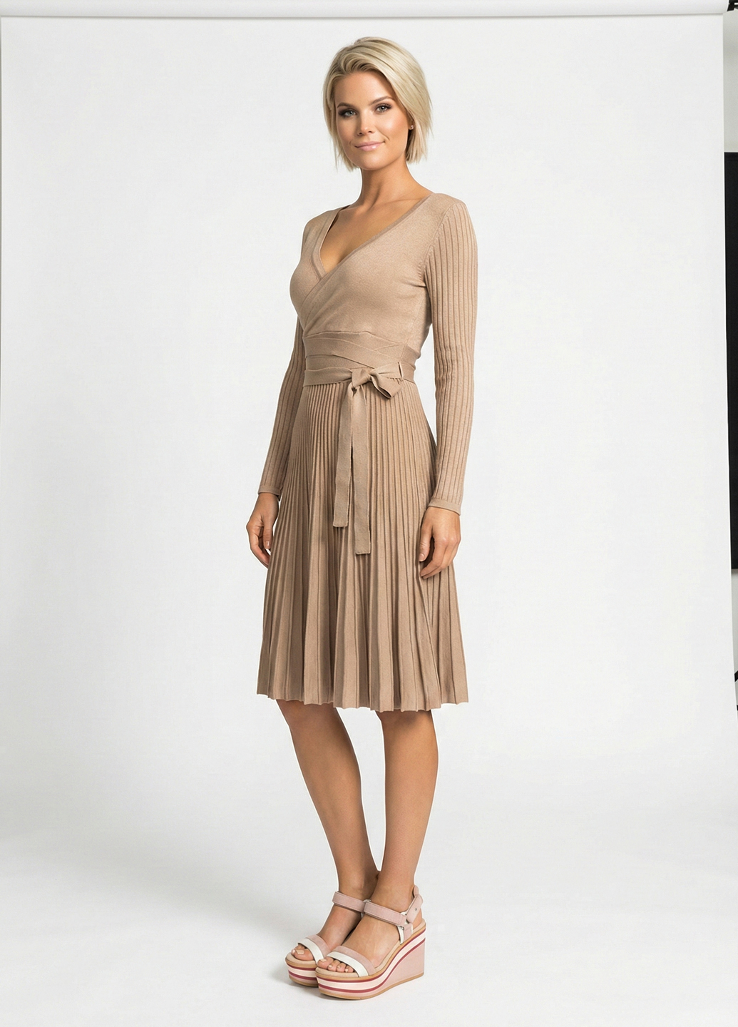 Сукня-міді плісована трикотажна - Бежевий
