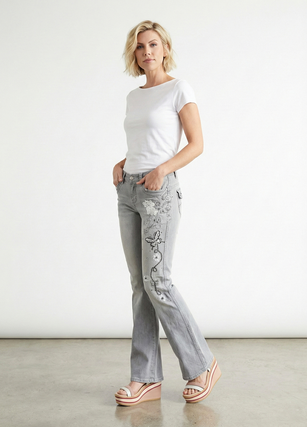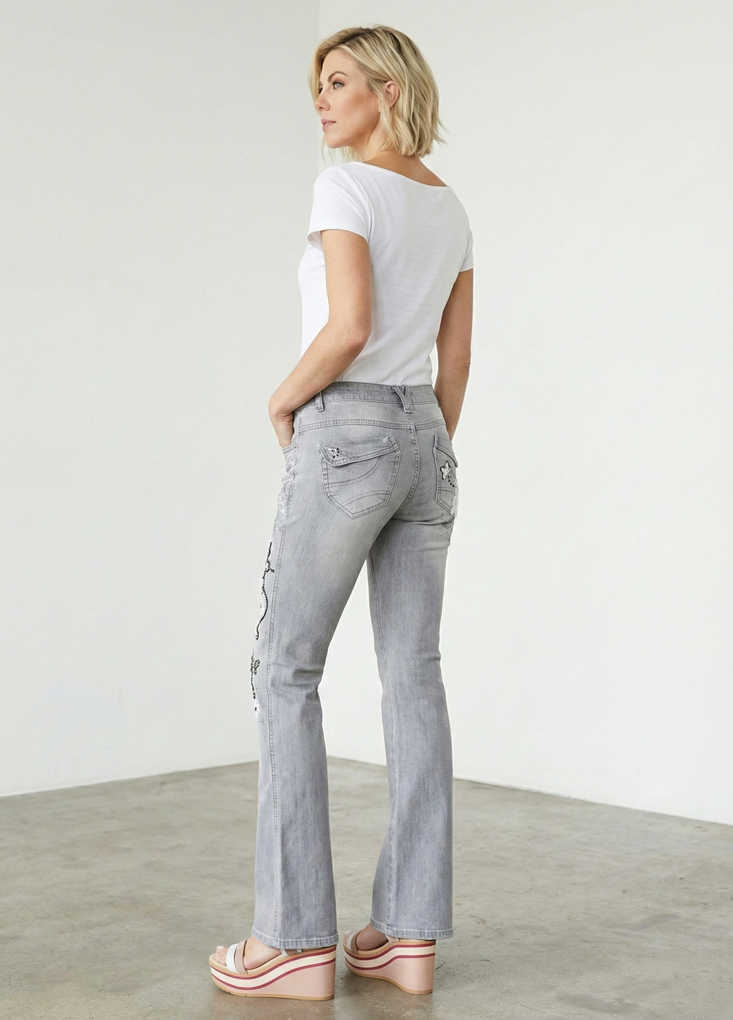 Сірі демісезонні вінтажні джинси з вишивкою звучать дуже стильно та унікально. Сірий колір є універсальним і легко поєднується з різними відтінками та квітами, а вінтажний стиль та вишивка додають особливий шарм та індивідуальність до вашого вбрання. Вінтажні джинси зазвичай відрізняються особливою атмосферою та характерними деталями, які надають їм унікального вигляду. Вишивка на джинсах може бути різноманітною та включати різні мотиви, такі як квіти, тварини, геометричні візерунки та інші декоративні елементи. Вона додає художнього акценту і створює унікальний образ. Поєднання сірого кольору, вінтажного стилю та вишивки створює цікавий та стильний образ.