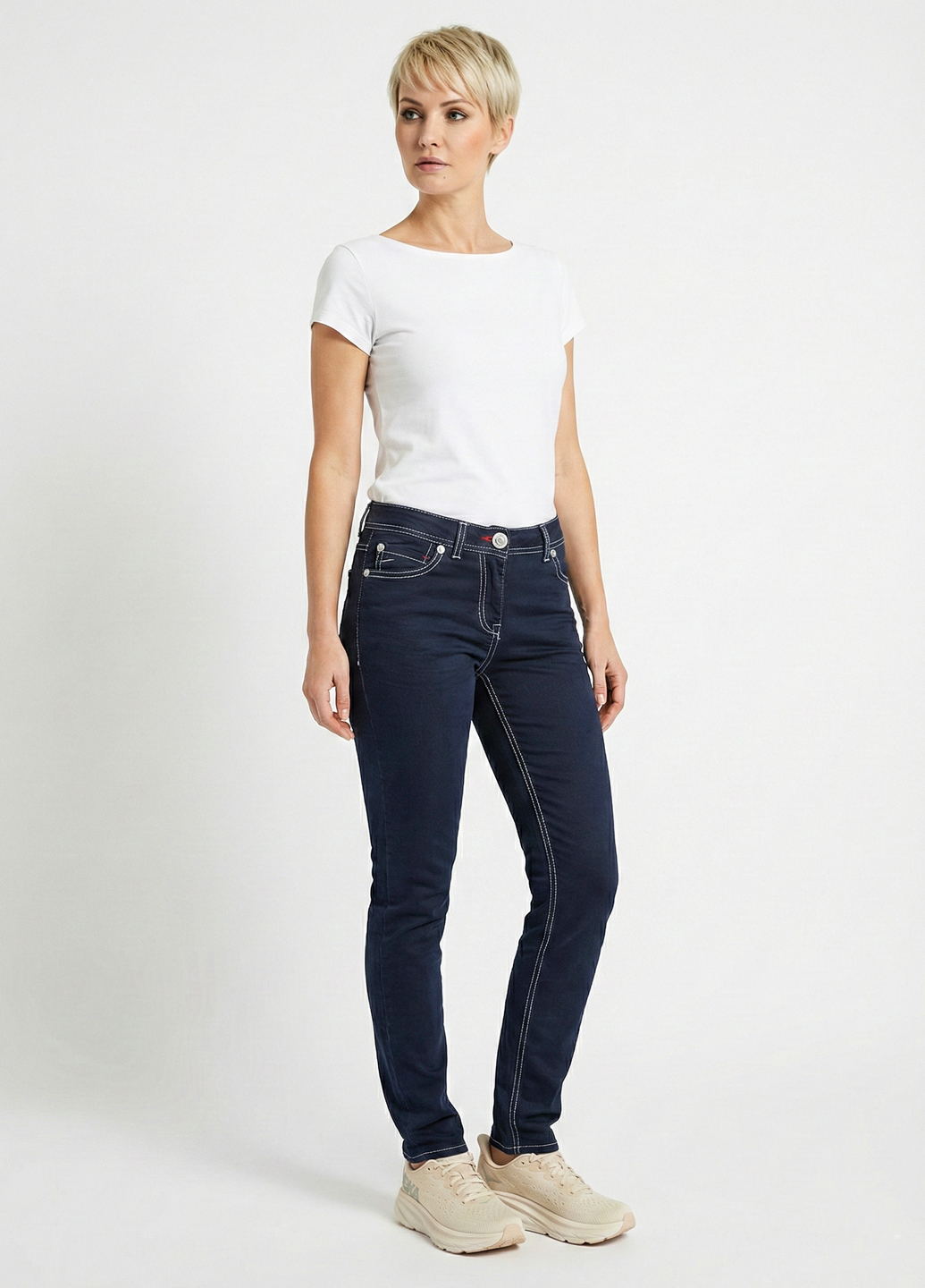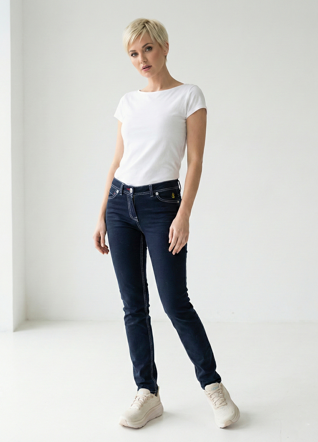 Сині демісезонні джинси, що облягають, - це модель джинсів, яка має щільну посадку і підкреслює форми ніг. Вони зазвичай виготовляються із матеріалів середньої щільності, що робить їх підходящими для носіння у перехідний період між сезонами. Облягаючі джинси мають силует, що звужується, який прилягає до ніг і підкреслює їх форми. Вони можуть створювати ефект утягування і надавати ніг більш стрункий вигляд. Синій колір є класичним та універсальним для джинсів, і він легко поєднується з різним верхнім одягом. Сині демісезонні джинси, що облягають, можуть бути ідеальним вибором для створення різних стильних нарядів.