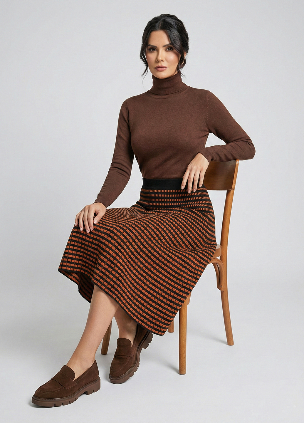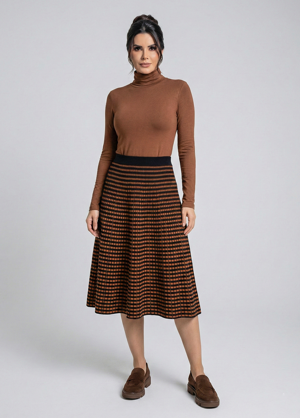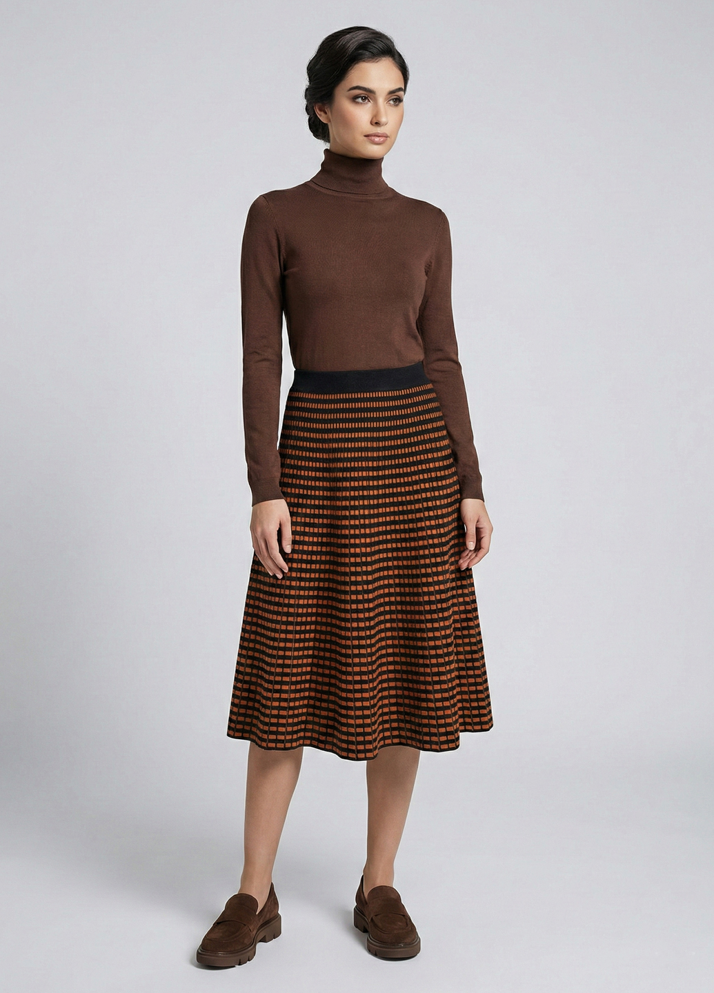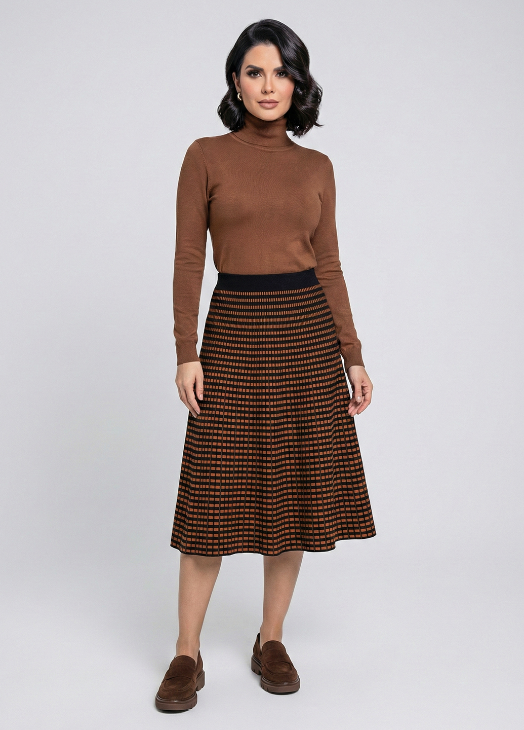 Трикотажна двостороння спідниця міді - Теракотовий
