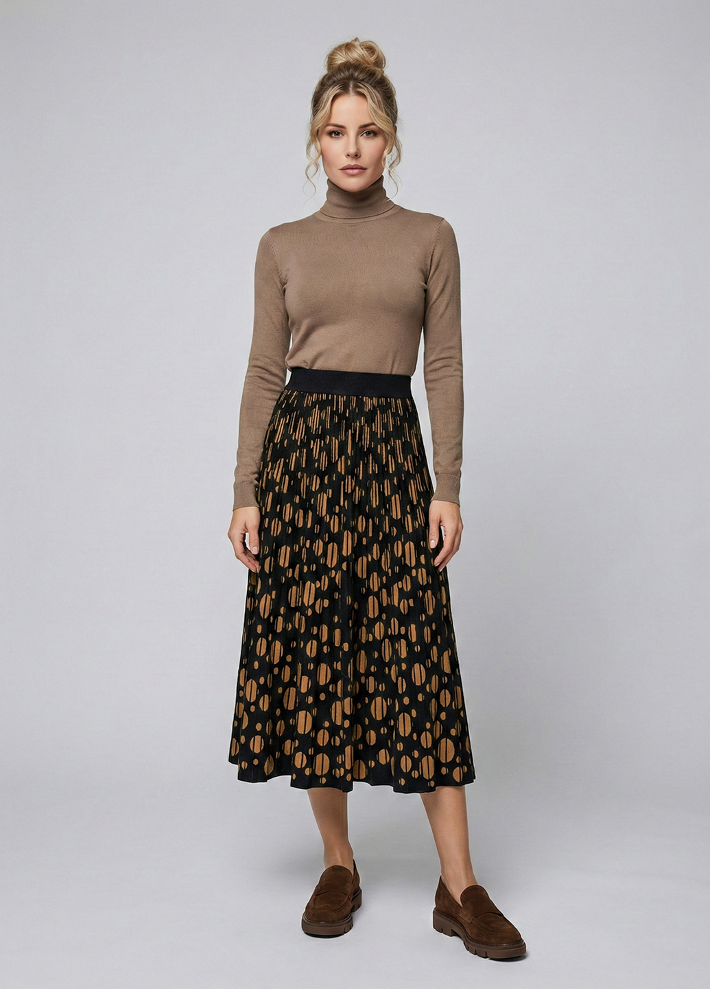 Трикотажна двостороння спідниця міді - Бежевий