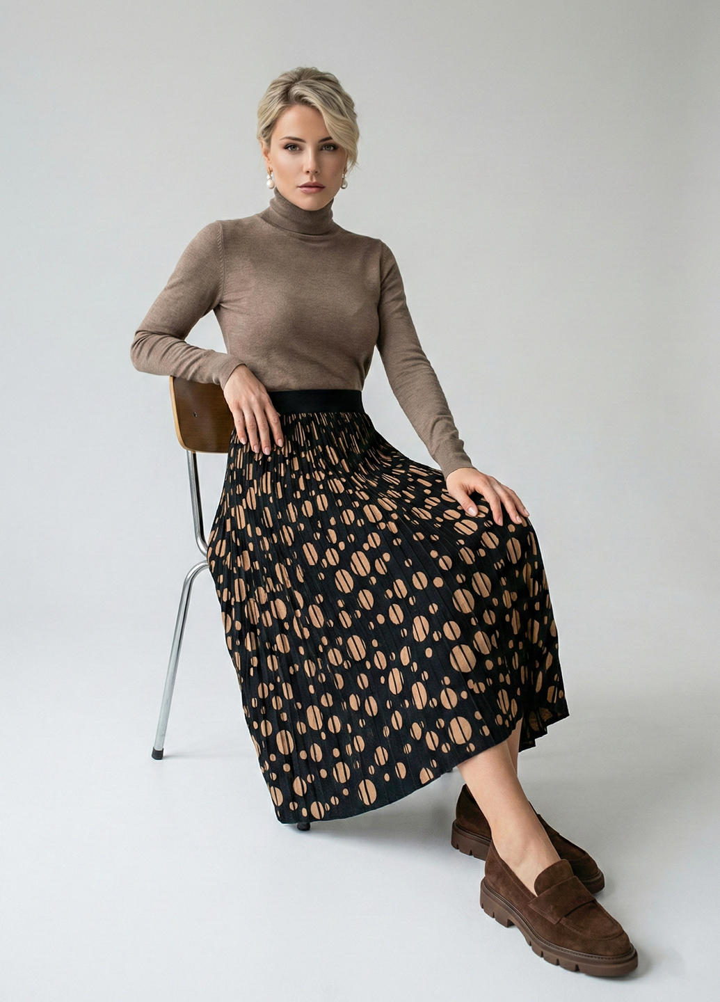 Трикотажна двостороння спідниця міді - це спідниця середньої довжини (до середини ікри), виконана з трикотажного матеріалу і має дві сторони, які можуть бути різними за кольором, візерунком або текстурою. Така спідниця зазвичай має еластичний пояс для комфортної посадки та підкреслює жіночні форми. Двостороння конструкція спідниці дозволяє носити її навиворіт, що створює можливість для різноманітних образів. Трикотажна спідниця міді - це стильний і практичний елемент гардеробу, який дозволяє створювати різноманітні образи і легко поєднується з іншим одягом. Розмір спідниці: довжина-80см, талія: 60-80см.