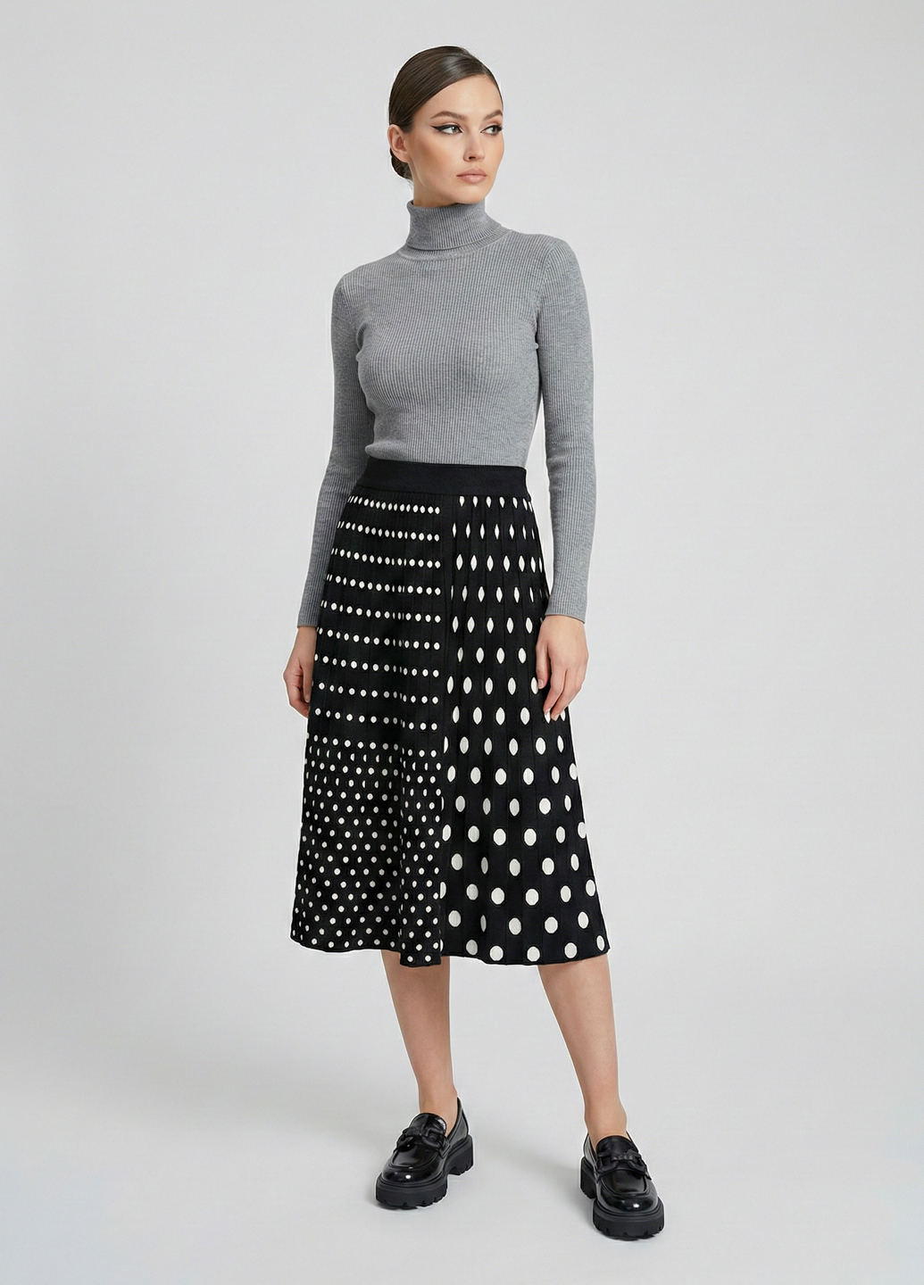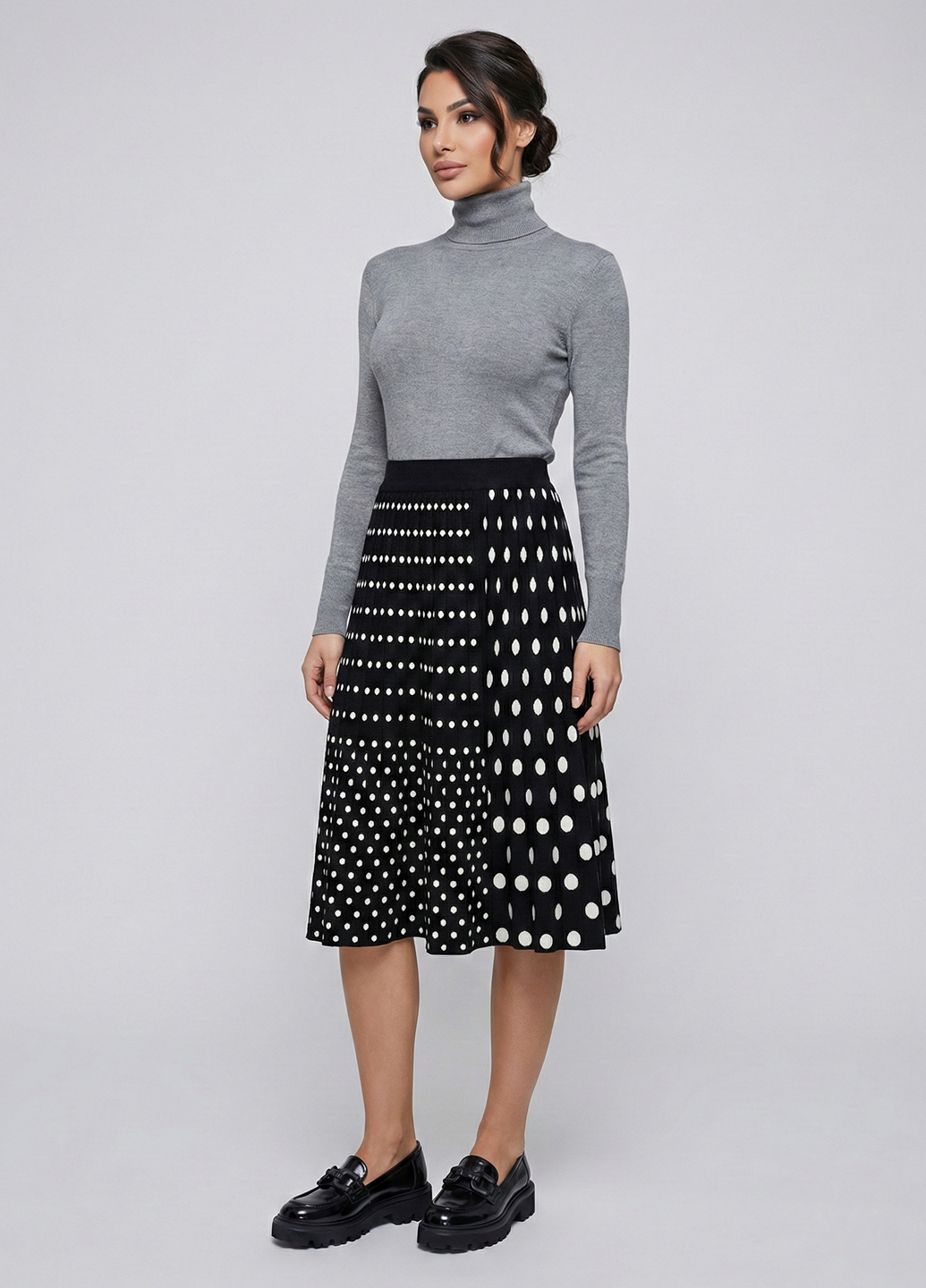 Трикотажна двостороння спідниця міді - Чорно-білий