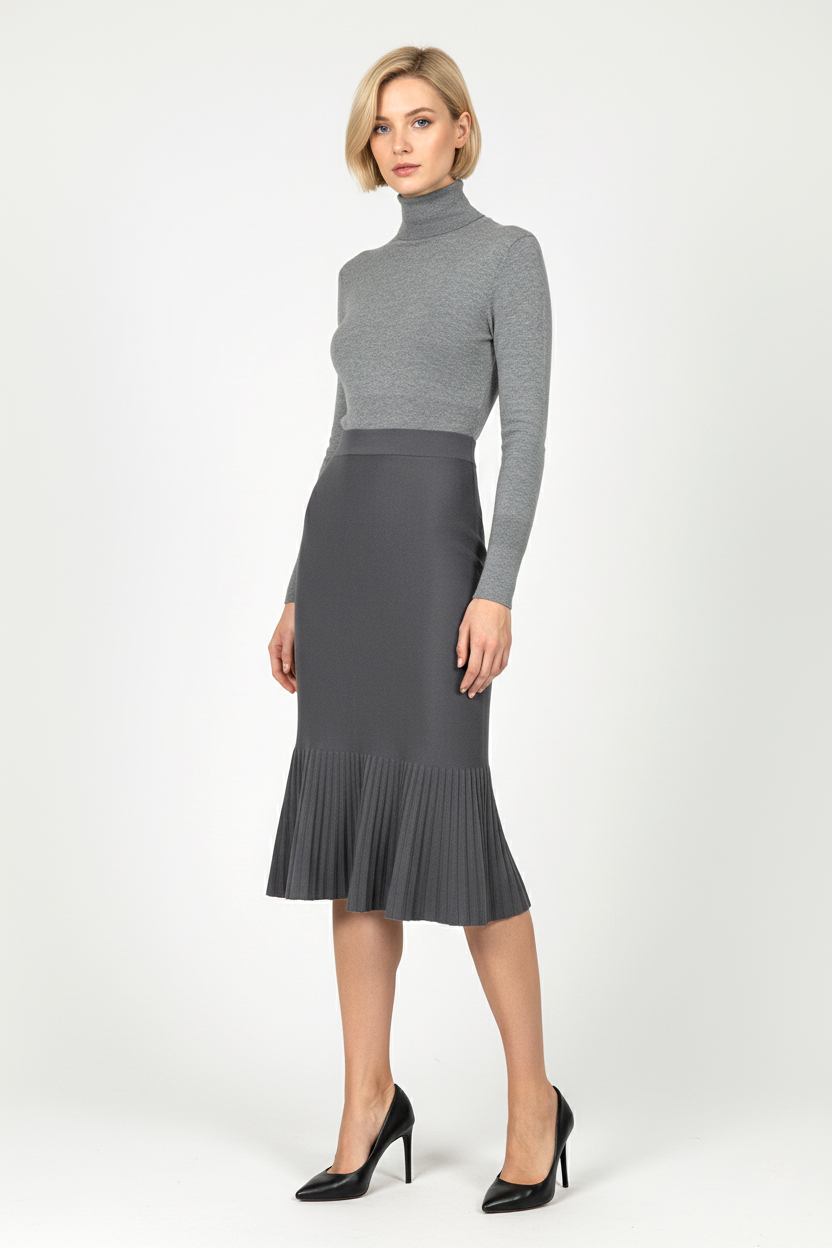 Трикотажна спідниця годе міді - Сірий