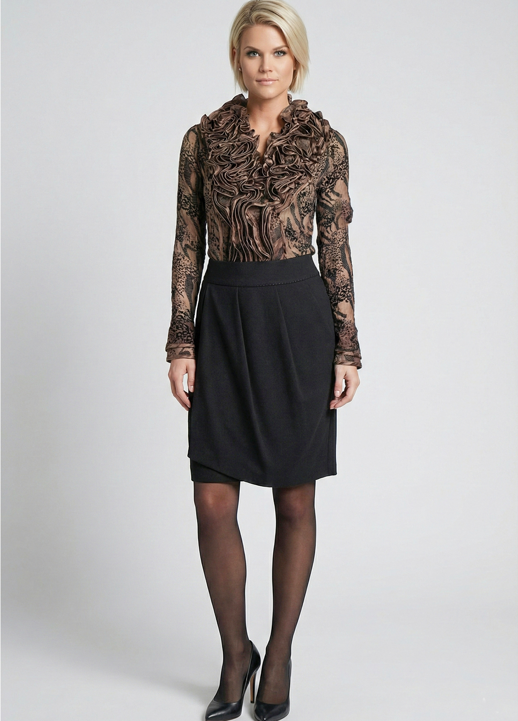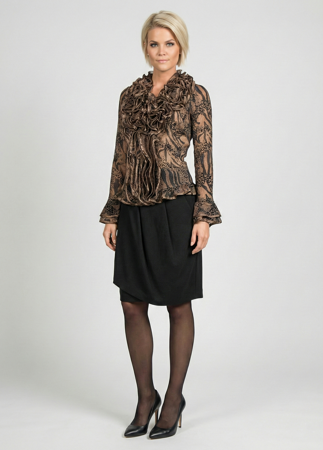 Жіноча блуза з органзи з баскою - Коричневий