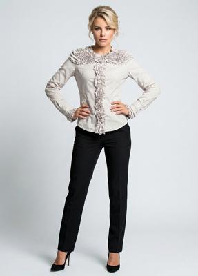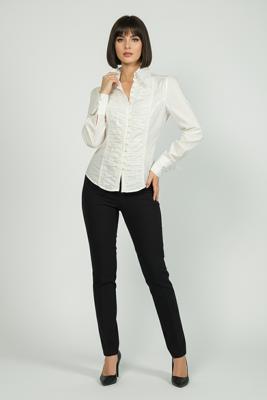 Жіноча блуза з рюшами - це модний і жіночний варіант верхнього одягу, який додає грайливості та витонченості до вашого образу. Рюші - це декоративні волани або складки тканини, які надають блузі об'єму і текстури. Блуза з рюшами може мати різні стилі та деталі. Рюші можуть бути розташовані по краях коміра, переда, рукавів чи нижньої кромки блузи. Комбінуйте блузу з рюшами з різними низами, щоб створити різноманітні стильні образи. Вона може поєднуватися зі спідницею, брюками, джинсами або навіть під піджаком для створення різних ефектів та стилів. При виборі блузи з рюшами зверніть увагу на кольори, фасон і декоративні елементи, що поєднуються. Цей стиль одягу підходить для повсякденних виходів, побачень, вечірніх заходів або інших особливих випадків, коли ви хочете виглядати вишукано та стильно. Жіноча блуза з рюшами підкреслить вашу жіночність і додасть грайливості до вашого образу.