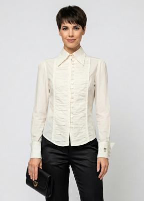 Жіноча блуза з рюшами - це модний і жіночний варіант верхнього одягу, який додає грайливості та витонченості до вашого образу. Рюші - це декоративні волани або складки тканини, які надають блузі об'єму і текстури. Блуза з рюшами може мати різні стилі та деталі. Рюші можуть бути розташовані по краях коміра, переда, рукавів чи нижньої кромки блузи. Комбінуйте блузу з рюшами з різними низами, щоб створити різноманітні стильні образи. Вона може поєднуватися зі спідницею, брюками, джинсами або навіть під піджаком для створення різних ефектів та стилів. При виборі блузи з рюшами зверніть увагу на кольори, фасон і декоративні елементи, що поєднуються. Цей стиль одягу підходить для повсякденних виходів, побачень, вечірніх заходів або інших особливих випадків, коли ви хочете виглядати вишукано та стильно. Жіноча блуза з рюшами підкреслить вашу жіночність і додасть грайливості до вашого образу.