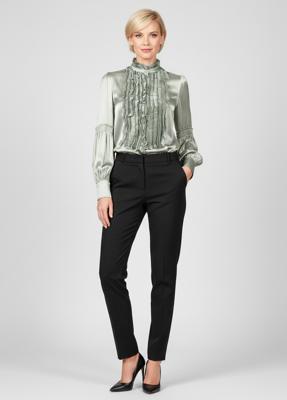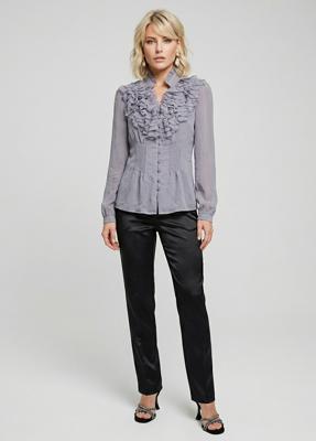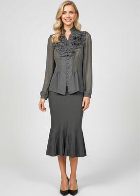 Жіноча блуза з жабо - це стильний та елегантний варіант верхнього одягу, який додає романтичності та vintage чарівності до вашого образу. Жабо - це декоративний комір або оздоблення на передній частині блузи, яка зазвичай складається з обірок або складок тканини. Блуза з жабо може мати різні стилі та деталі. Жабо може бути маленьким і делікатним, або великим і виразним, залежно від вашої переваги та стилю. Воно може бути виконане з тієї ж тканини, що і блуза, або контрастної тканини, щоб створити цікавий акцент. Комбінуйте блузу із жабо з різними низами, щоб створити різноманітні стильні образи. Вона може бути поєднана зі спідницею, брюками, джинсами або навіть під піджаком, залежно від вашого стилю та уподобань. При виборі блузи з жабо зверніть увагу на кольори, фасон і декоративні елементи, що поєднуються. Цей стиль одягу підходить для повсякденних виходів, романтичних побачень чи особливих заходів, де ви хочете виглядати вишукано та елегантно. Жіноча блуза з жабо надасть вашому образу особливого шарму і неповторності.