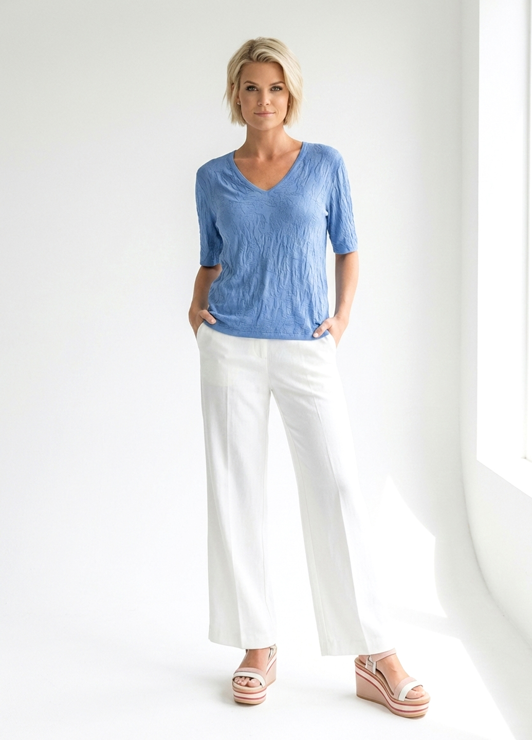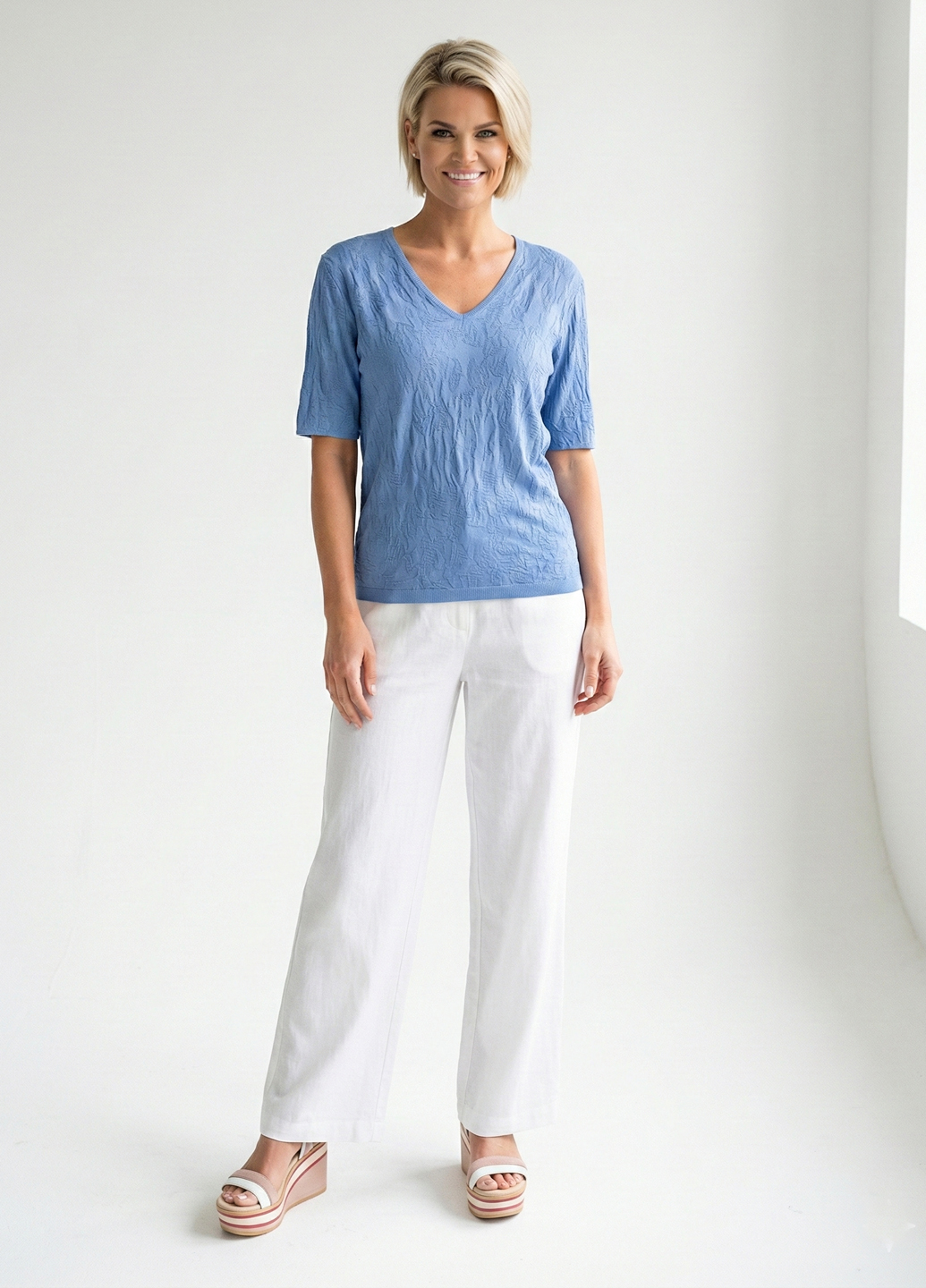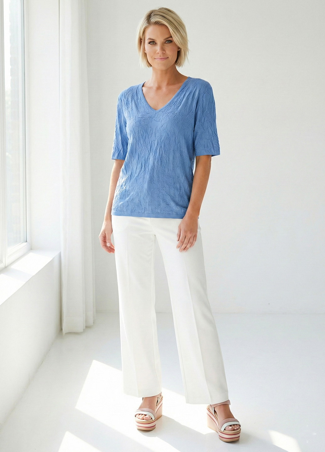 Жіноча футболка з крижаного шовку з V-подібним вирізом - Синій