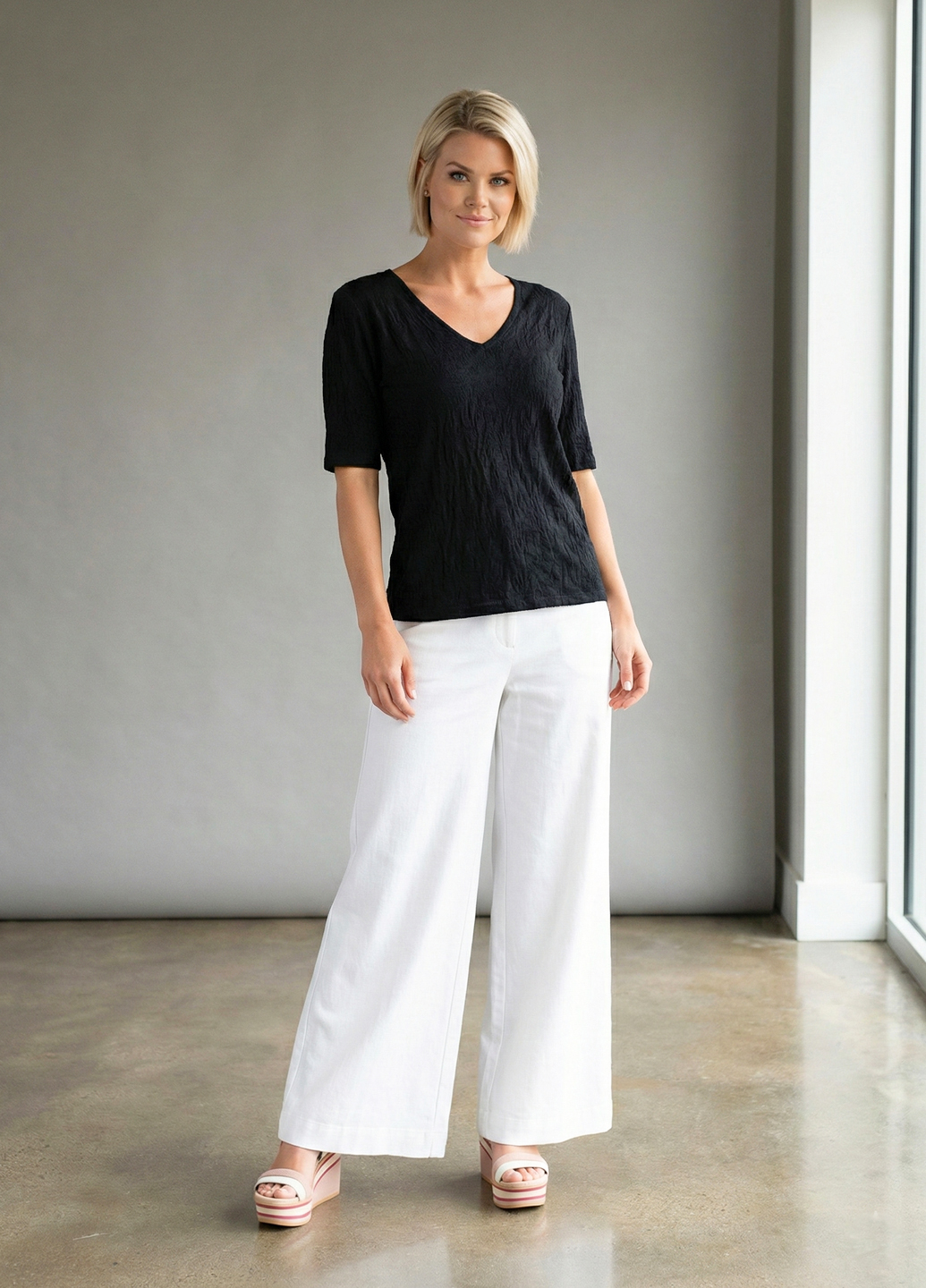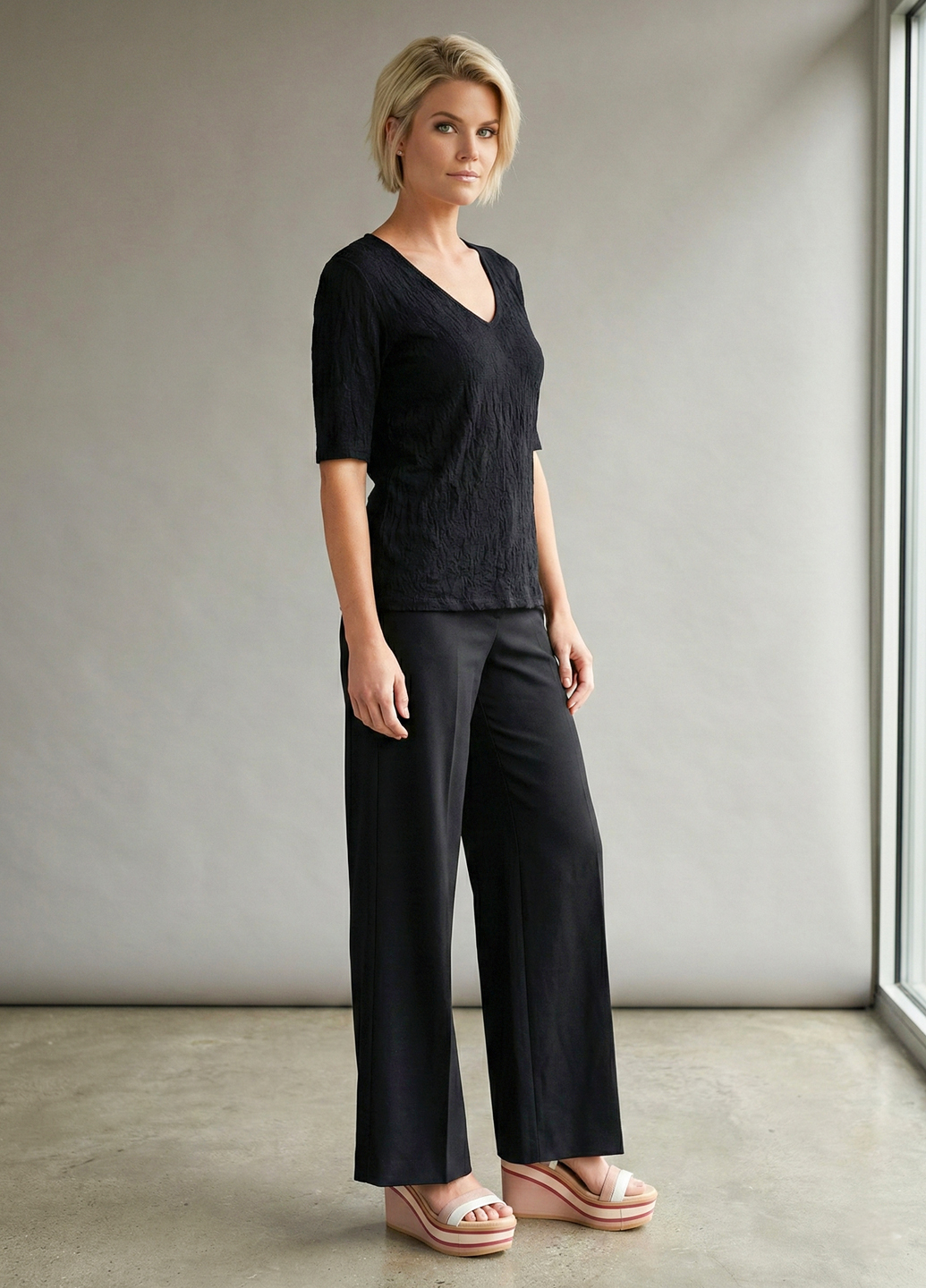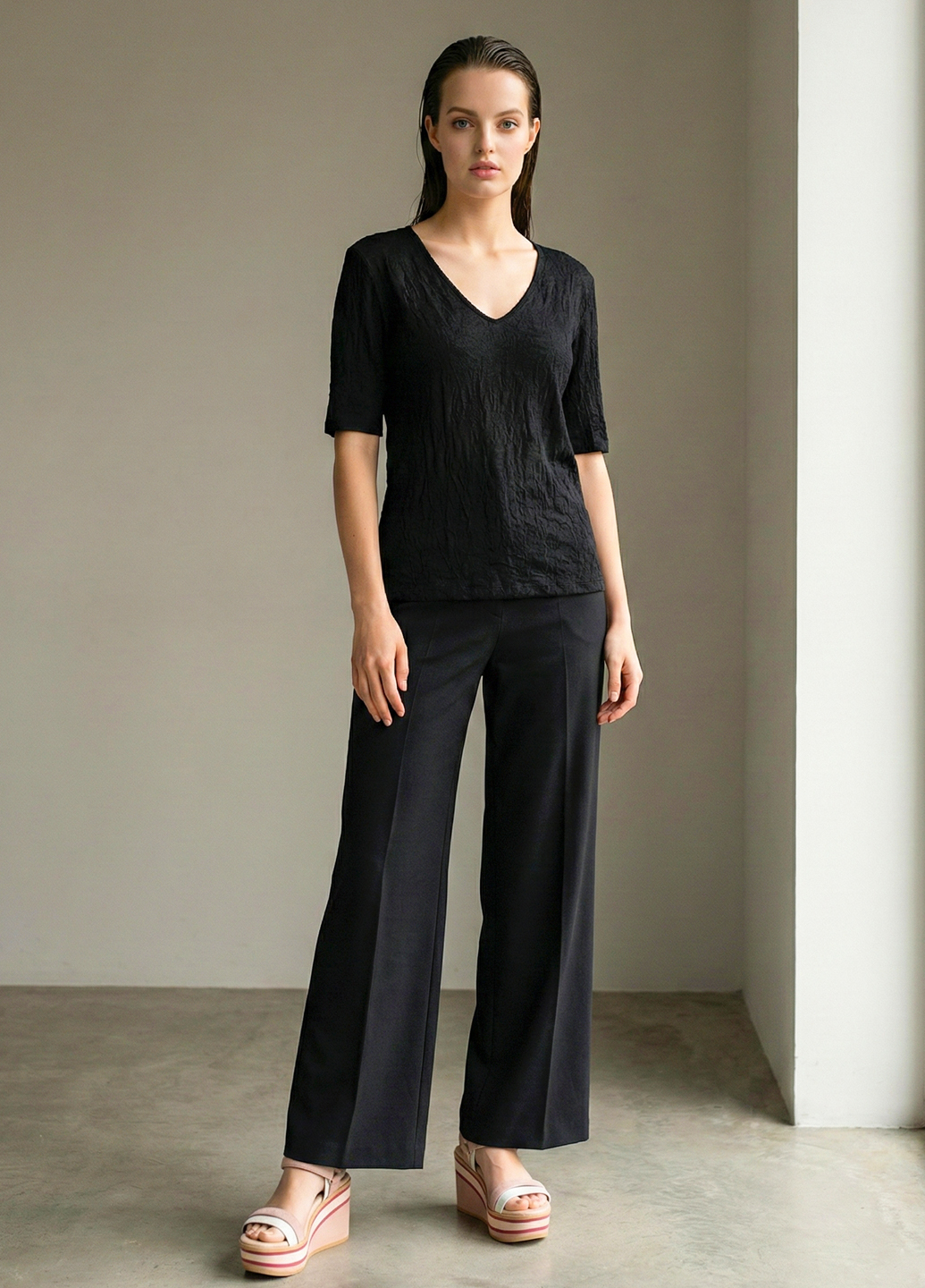 Жіноча футболка з крижаного шовку з V-подібним вирізом - Чорний