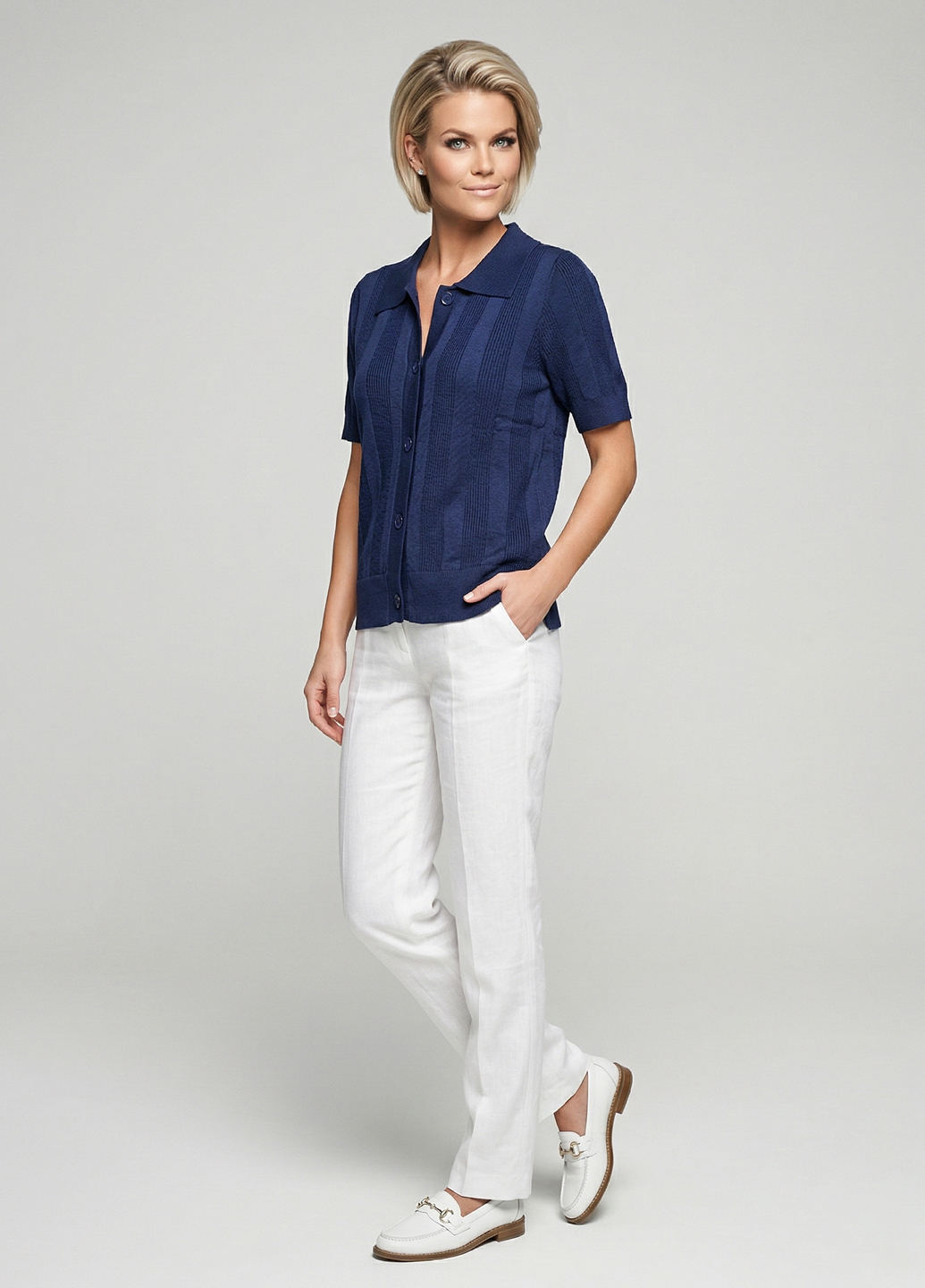Жіноча літня трикотажна сорочка-поло - Синій