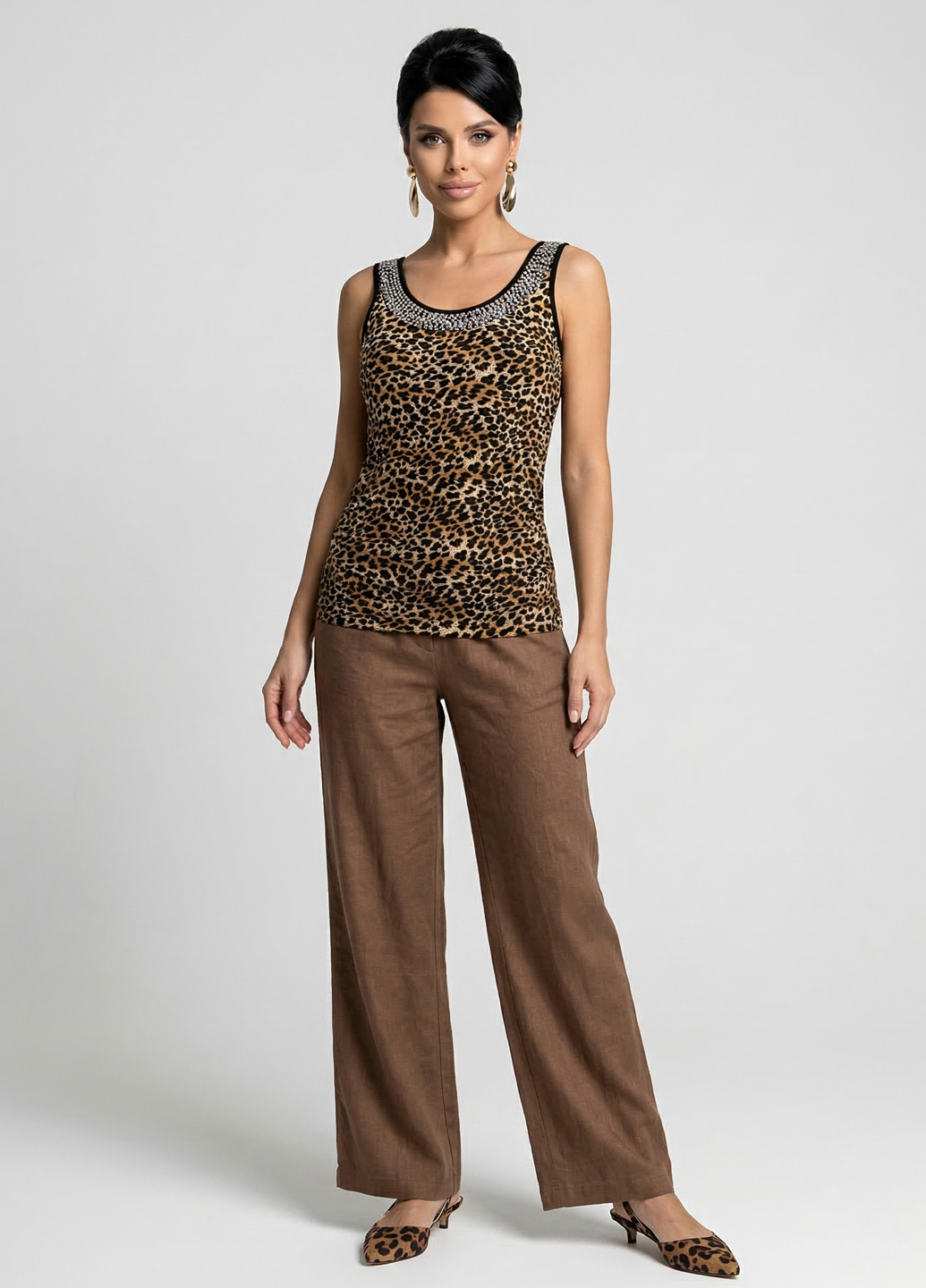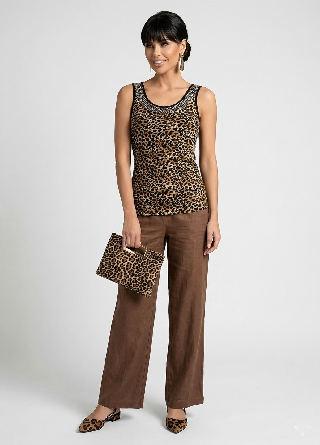 Ця жіноча майка з декором є вишуканою і стильною моделлю, яка підкреслить вашу індивідуальність і додасть витонченості вашому образу. Майка виконана з якісного та легкого матеріалу, що забезпечує комфорт та приємне відчуття на шкірі. Її декоративні елементи надають їй особливої привабливості. Майка з декором ідеально поєднується з джинсами, спідницями чи шортами, створюючи легкий та свіжий образ. Ви також можете носити її під кардиганом, жакетом або блейзером, щоб додати структуру та шаруватість вашого вбрання. Ви можете вибрати майку з декором, який відповідає вашому стилю та настрою.