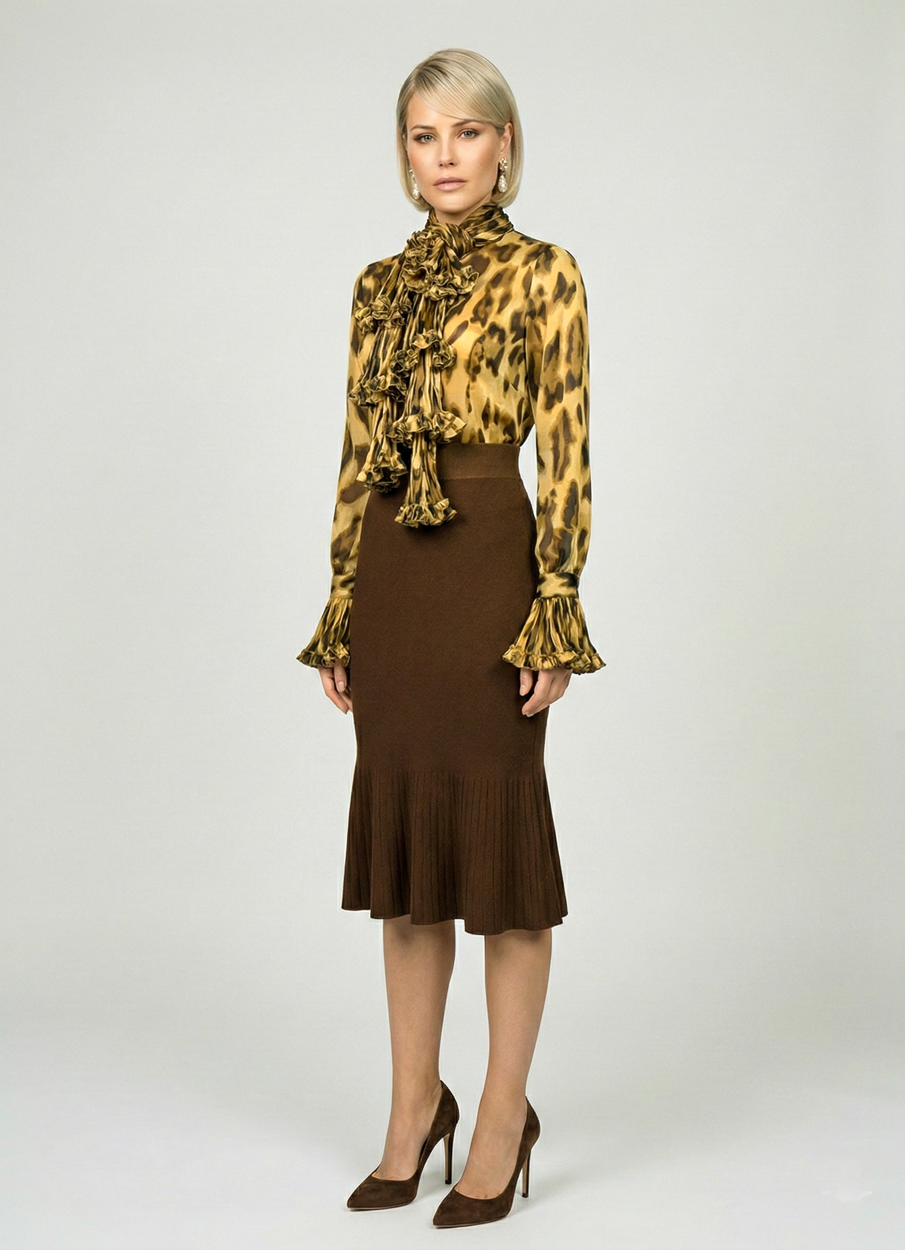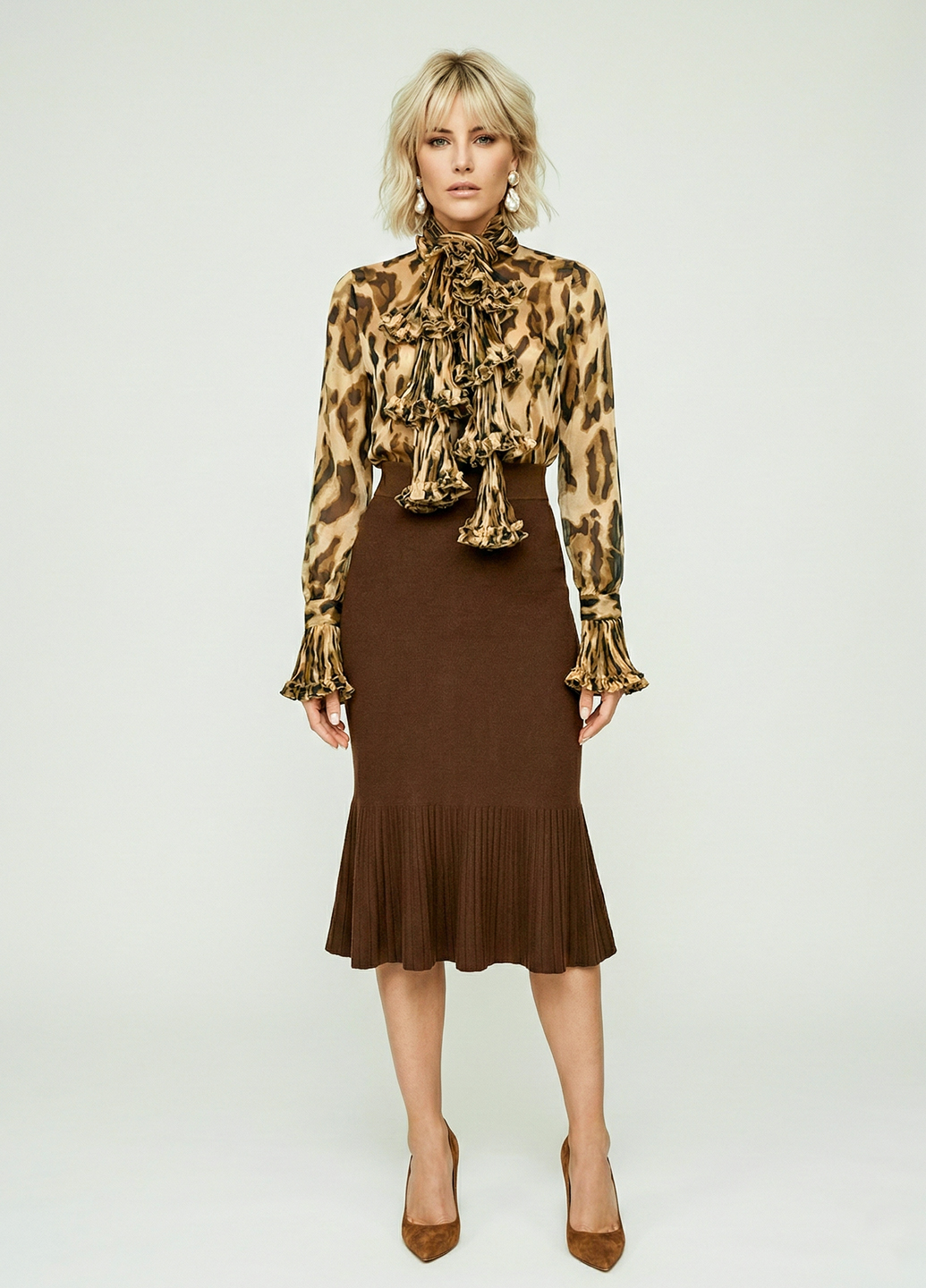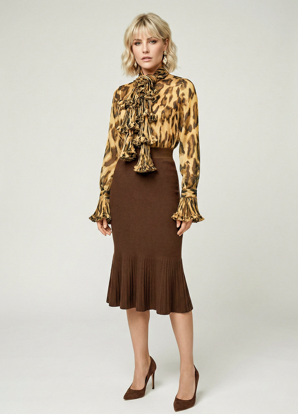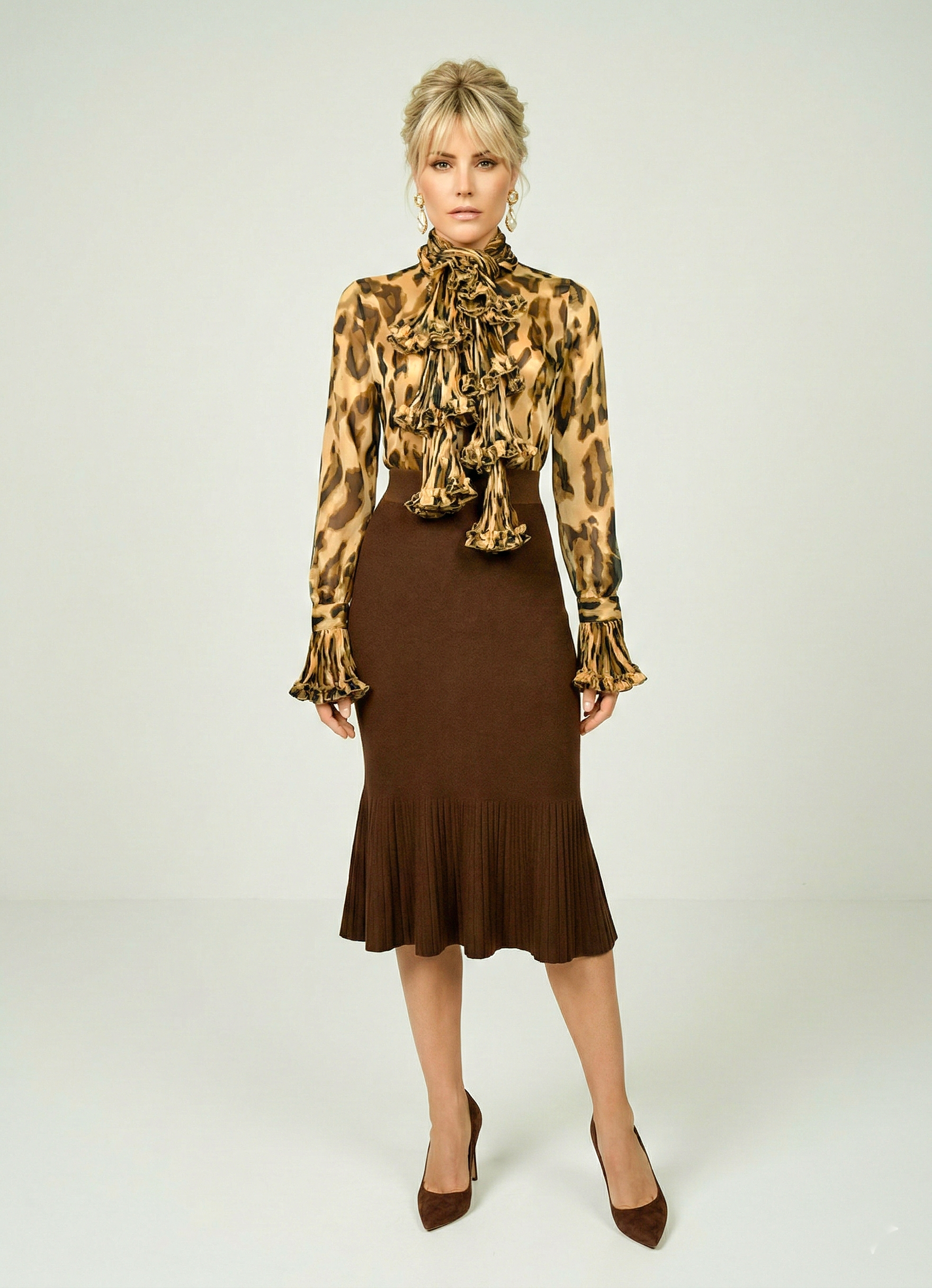 Жіноча шифонова блуза з шарфом - це модний та елегантний варіант верхнього одягу, який додає нотку стилю та розкоші до вашого образу. Шифон - це легка і прозора тканина, яка часто використовується для створення повітряних та жіночних моделей. Блуза з шарфом пропонує цікавий та універсальний спосіб прикраси. Шарф, виконаний з тієї ж чи соплотної тканини, як і блуза, може бути прикріплений до коміра або носитися навколо шиї. Він може бути зав'язаний у різний спосіб, щоб створити різноманітні стильові варіації. Комбінуйте блузу з шарфом з різними низами, такими як спідниці, штани або джинси, щоб створити різноманітні образи. Шарф може бути використаний для створення акценту та підкреслення вашого стилю. Вибирайте блузу та шарф відповідно до ваших уподобань щодо кольору, фасону та дизайну. Цей стиль одягу підійде для різних подій – від повсякденних виходів до формальніших заходів. Жіноча шифонова блуза з шарфом надасть вам елегантності та вишуканості в будь-якій ситуації.