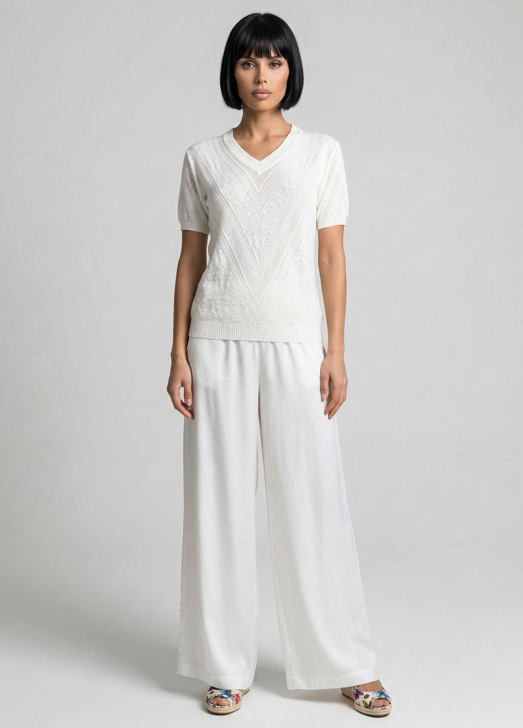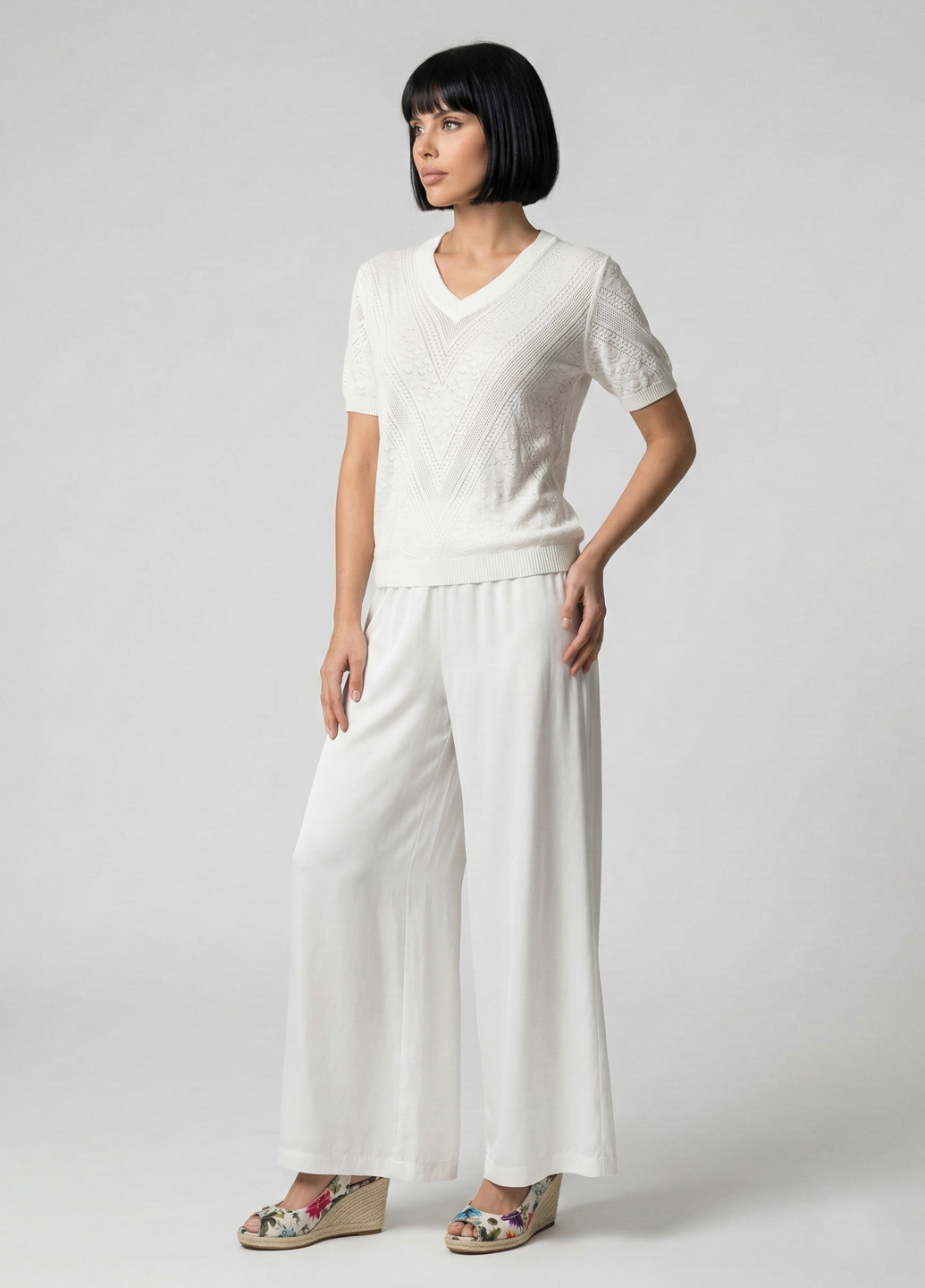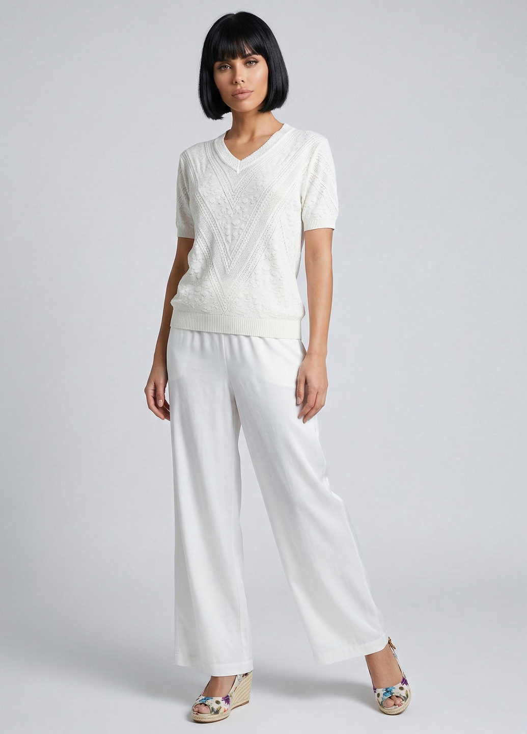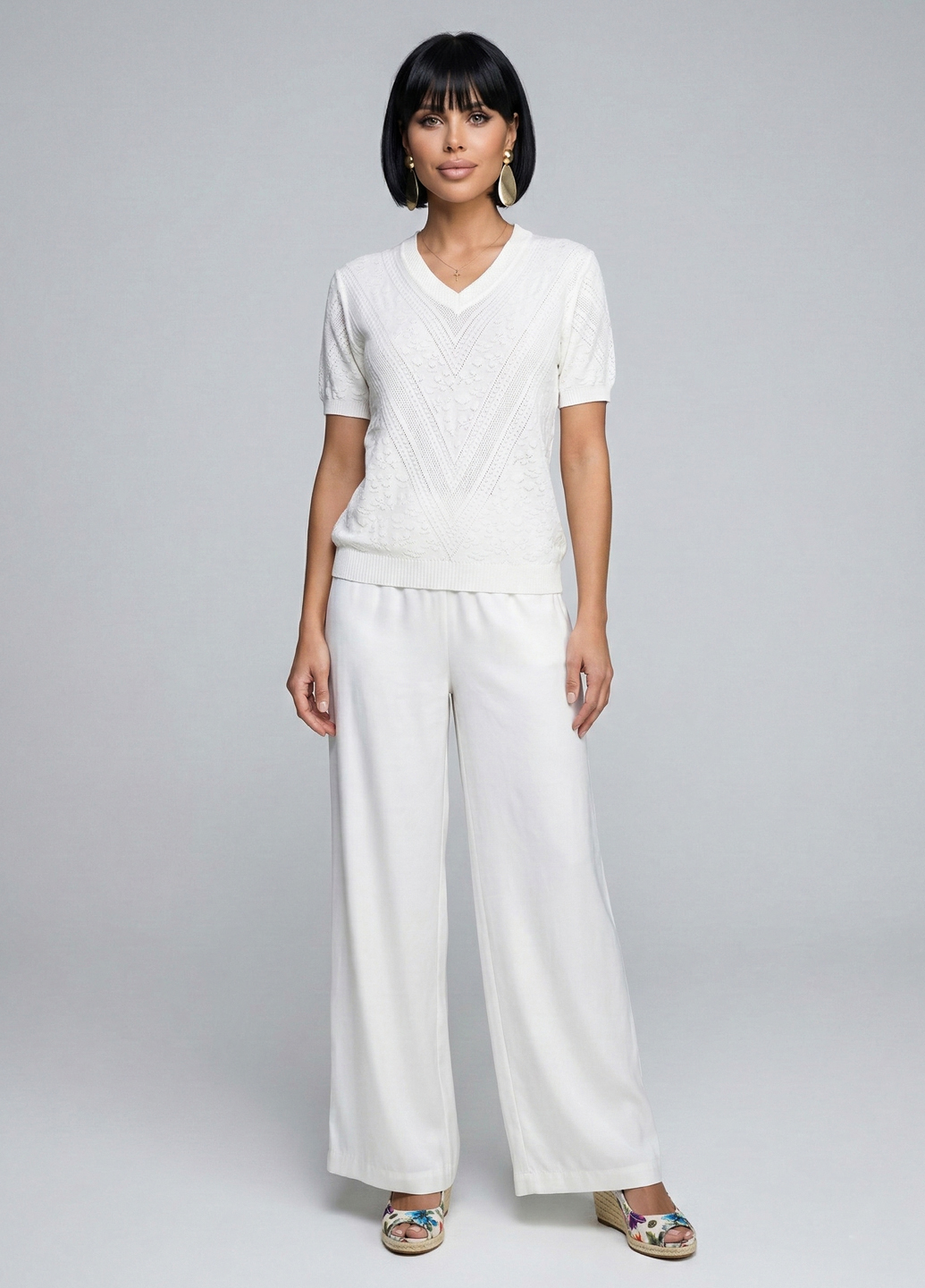 Жіноча трикотажна футболка з V-подібним вирізом - Білий