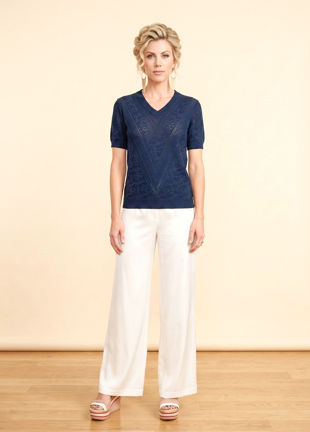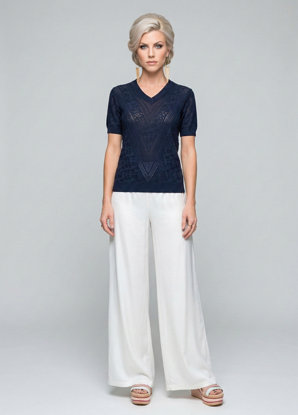 Жіноча трикотажна футболка з V-подібним вирізом із крижаного шовку - це втілення комфорту, легкості та витонченого мінімалізму. Такий фасон особливо популярний влітку 2025 року за рахунок своєї універсальності та ефекту охолодження тканини. Переваги: Не перегріває шкіру - особливо актуально у міській спеці, ідеально сідає по фігурі, струмує по тілу. Практична у догляді - легко стирається, швидко сохне, не вимагає прасування. Така футболка — must-have для сучасної жінки, яка прагне балансу між стилем і комфортом. Розмір: довжина 57см, бл/груди 95см, плечі 38см.