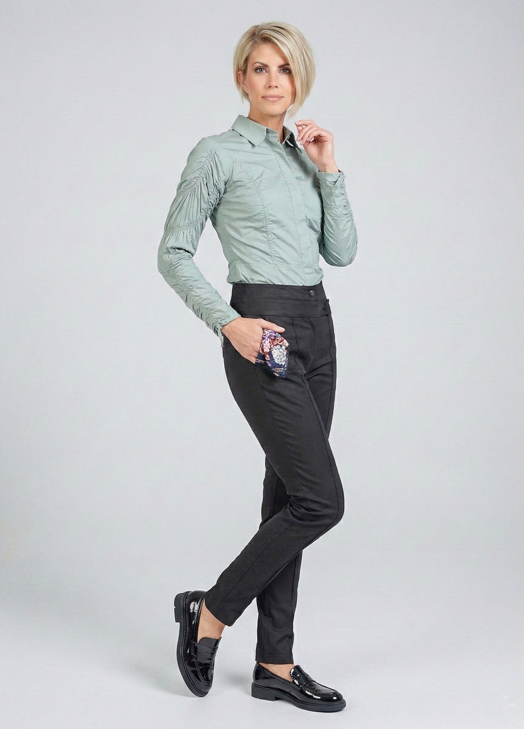 Жіночі ошатні штани є елегантним і стильним варіантом для особливих заходів або формальних випадків. Вони дозволяють створити витончений образ і можуть бути частиною жіночого костюма чи самостійного вбрання. Ошатні штани можуть бути різних фасонів, від класичних прямих до звужених моделей. Ошатні штани можна стилізувати для різних типів заходів. Для формальних випадків можна поєднувати їх із сорочкою або блузою.