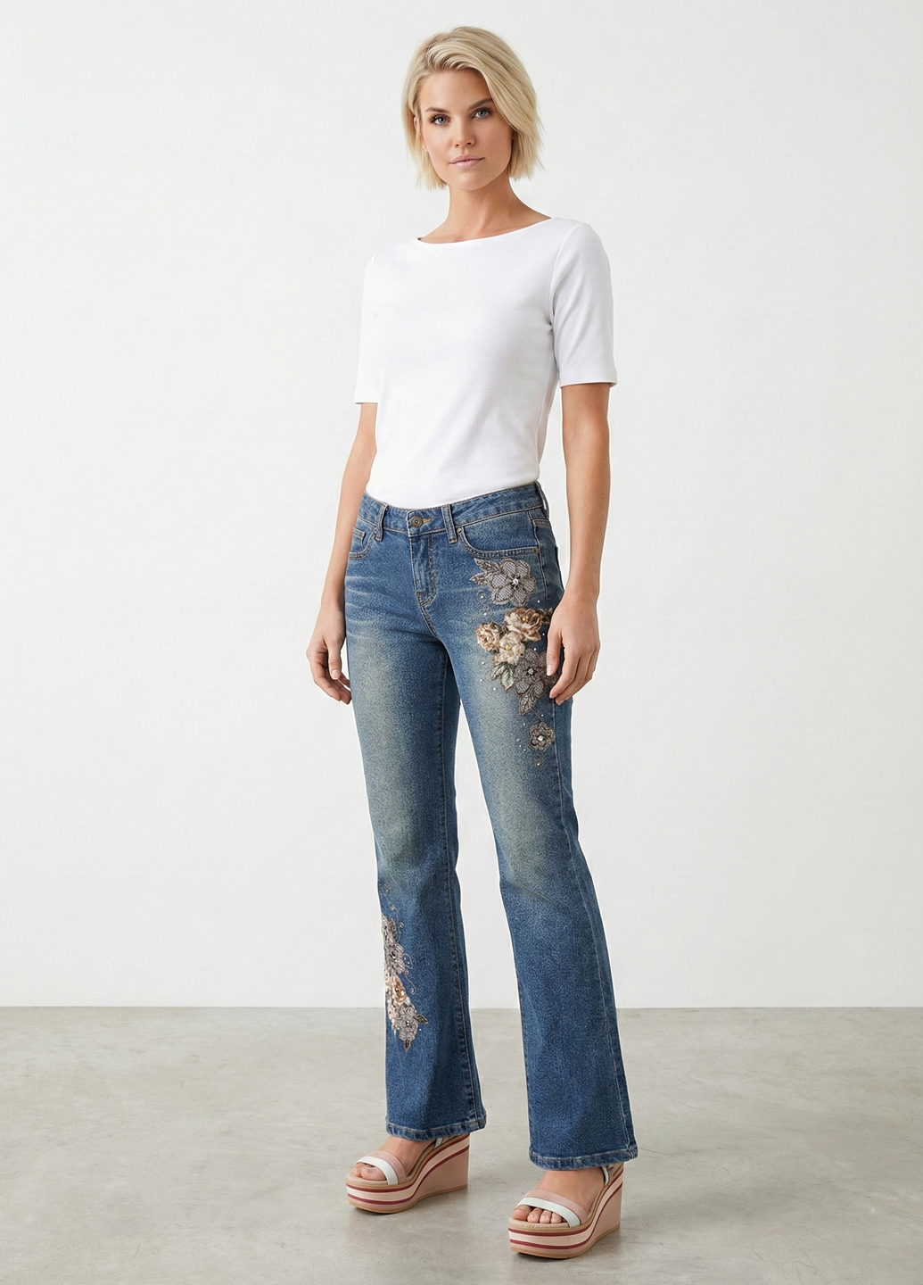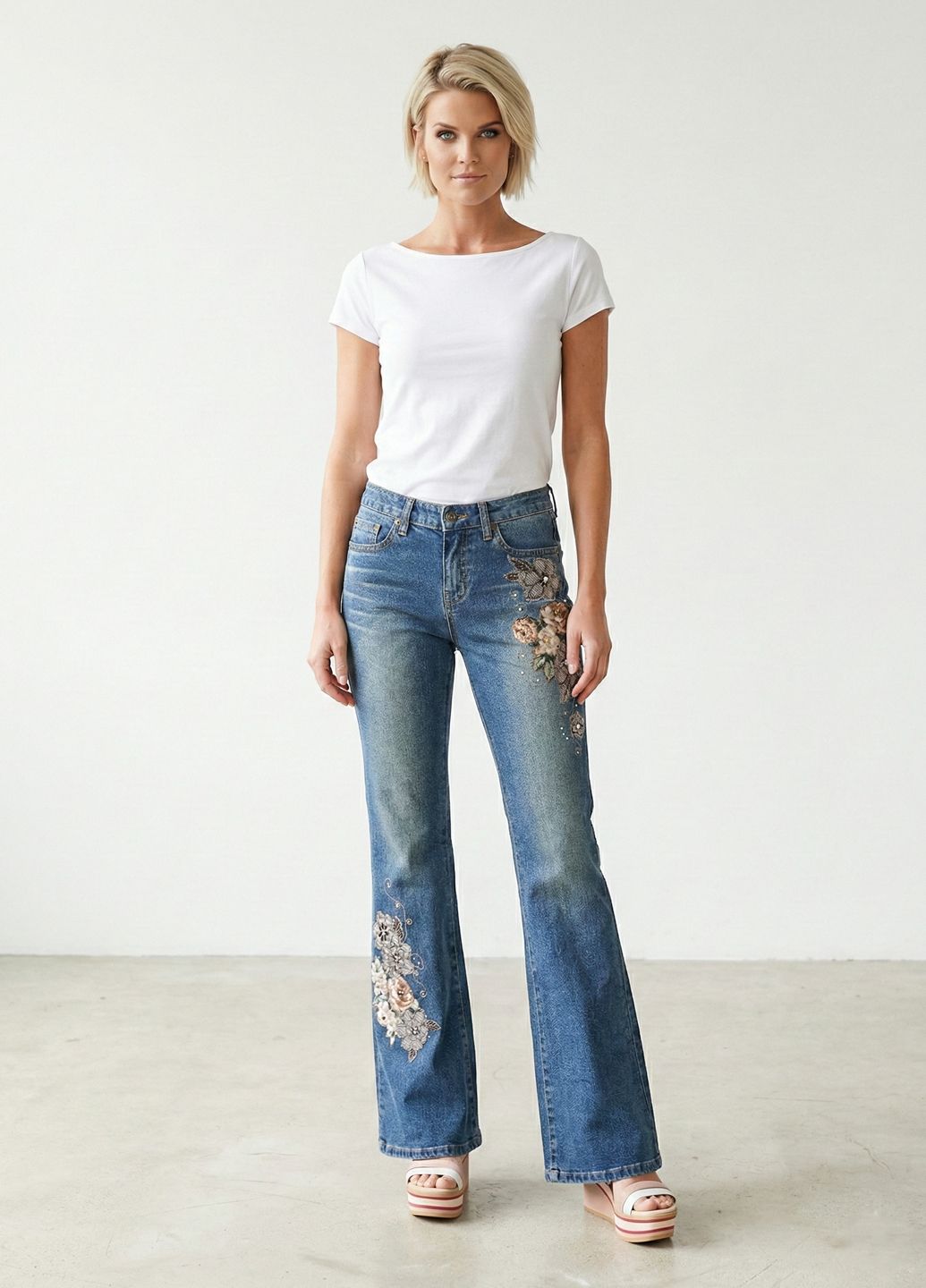 Жіночі джинси - це стильна і вінтажна модель штанів. Вінтажні джинси з вишивкою можуть бути унікальним і стильним елементом гардеробу. Ви можете шукати такі вироби у магазинах вінтажного одягу, онлайн-аукціонах або спеціалізованих інтернет-магазинах, що пропонують вінтажні моделі. Деякі джинси клешені можуть бути прикрашені вишивкою, аплікаціями, потертостями, нашивками або іншими декоративними елементами, що робить їх більш оригінальними. Джинси клеш повертаються в моду і можуть надати вашому образу вінтажного та стильного вигляду. Ви можете вибирати їх в залежності від своїх уподобань та сезону.