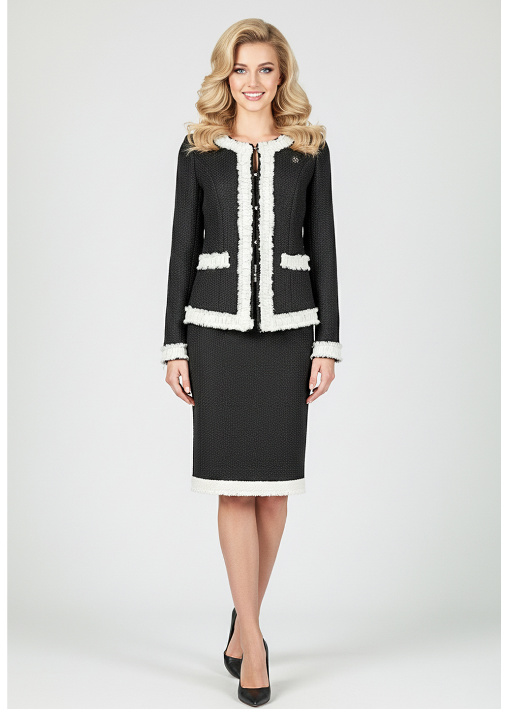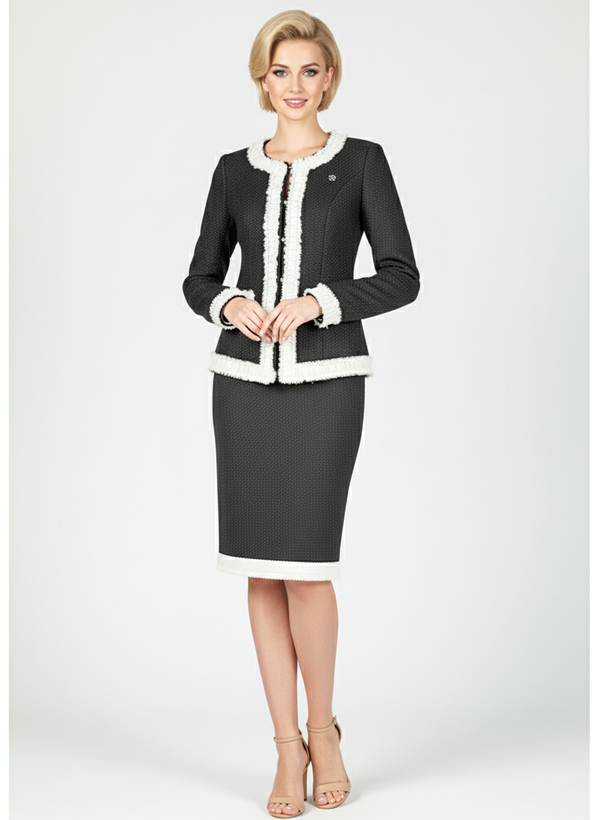 Костюм з нашої колекції створений з якісних матеріалів, що забезпечують комфорт та гарну посадку. Шанельський стиль має на увазі використання класичних елементів, таких як приталений піджак з акцентованими плечима і спідниця з акуратними лініями, що створюють витончену силует. Костюми під шанель зі спідницею ідеально підходять для ділових зустрічей, офісних подій чи інших формальних заходів. Вони виглядають елегантно, стильно та професійно, підкреслюючи вашу впевненість та успіх. Купуючи жіночий діловий костюм під шанель зі спідницею у нашому інтернет-магазині, ви можете бути впевнені у високій якості продукції та професійному обслуговуванні.
