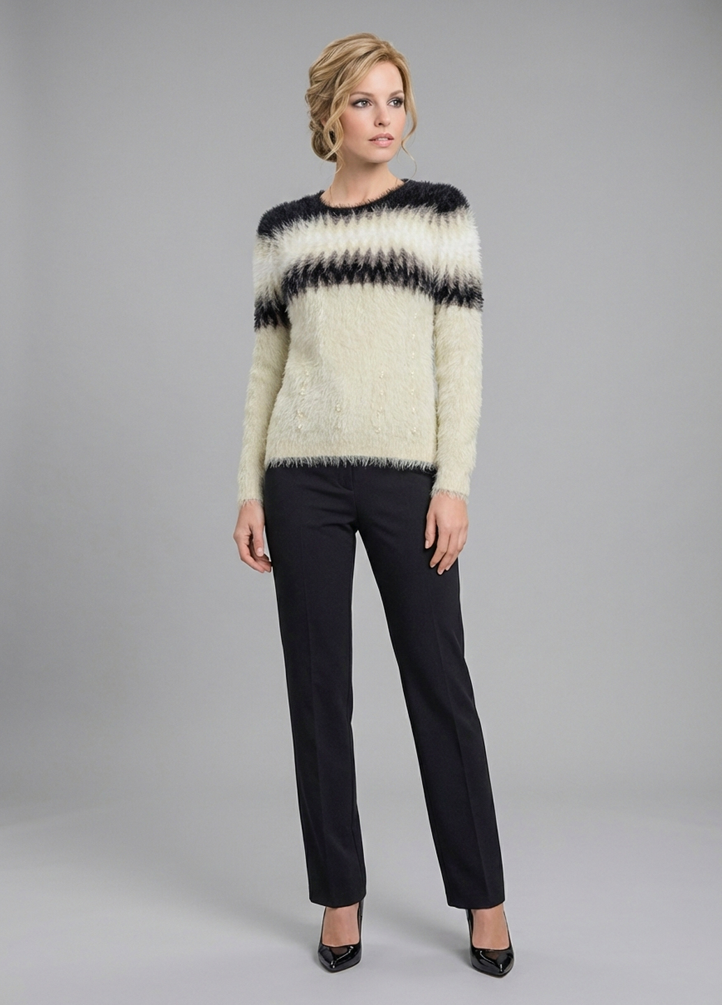 Жіночий пухнастий демісезонний светр з віскози пропонує поєднання м'якості, комфорту і стилю. Светр з віскози має ніжну текстуру і приємний на дотик. Пухнастий светр зазвичай має щільний і м'який ворс, який надає йому обсягу і створює затишний і модний вигляд. Светр з віскози може бути легким і підходитиме для демісезонного періоду, коли температура трохи знижується, але ще не настільки холодно, щоб носити важкі зимові светри. Ви можете вибрати светр з однотонним кольором або з візерунками, які відповідають вашому стилю та уподобанням.