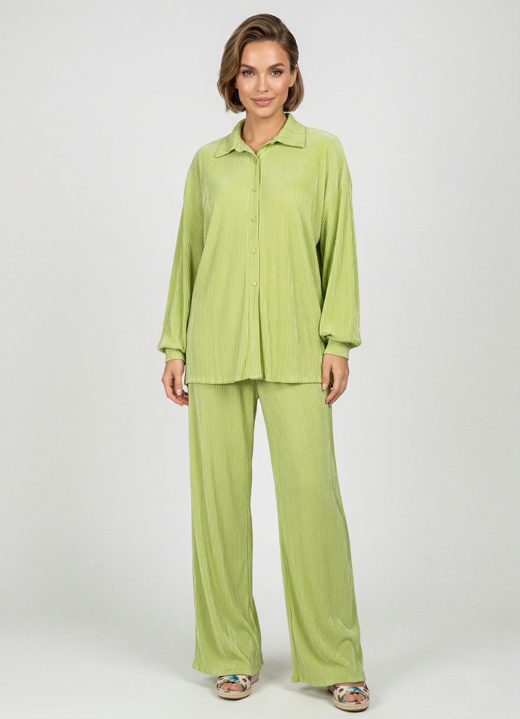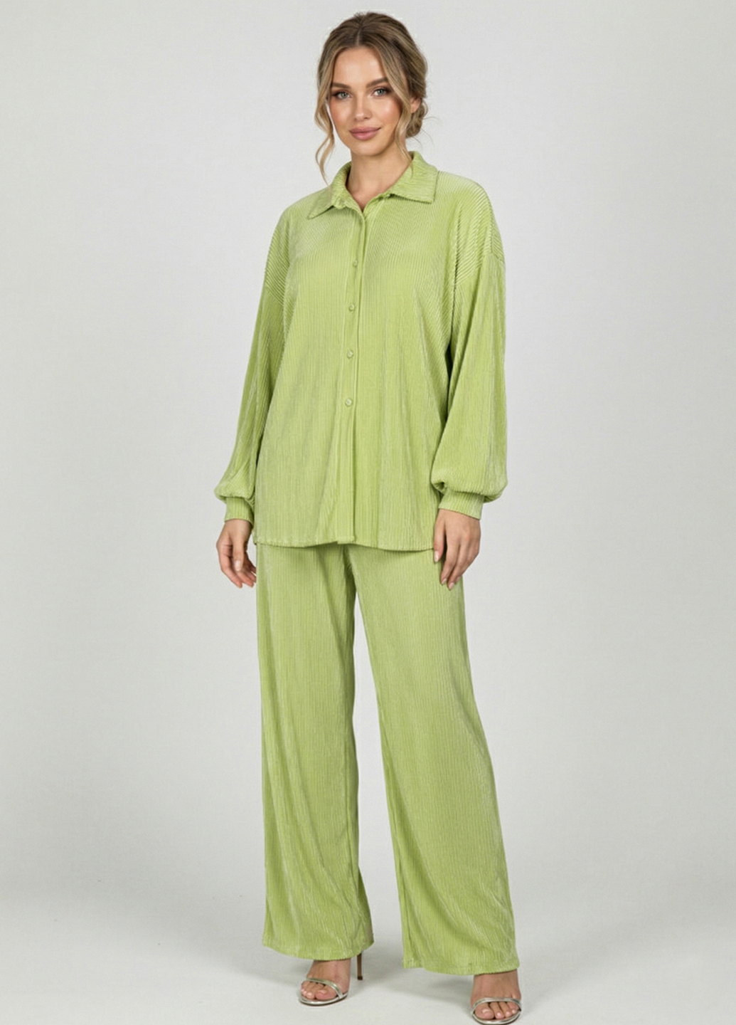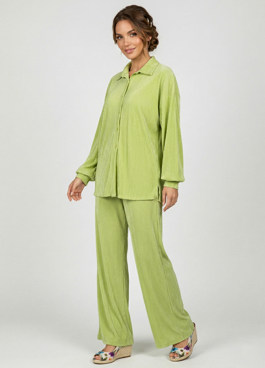 Чарівний та стильний, жіночий літній плісований брючний костюм стане вибором для модних та впевнених у собі жінок. Цей костюм ідеально підходить для різних подій та повсякденного образу. Він є універсальним для різноманітних ситуацій. Ви можете носити його на побачення, ділові зустрічі, вечірні прогулянки чи відпочинок із друзями. Додати пару туфель і стильні аксесуари, щоб створити завершений образ. Не пропустіть можливість додати цей модний та універсальний літній костюм у свій гардероб. Замовте його зараз та насолоджуйтесь стильними літніми образами!