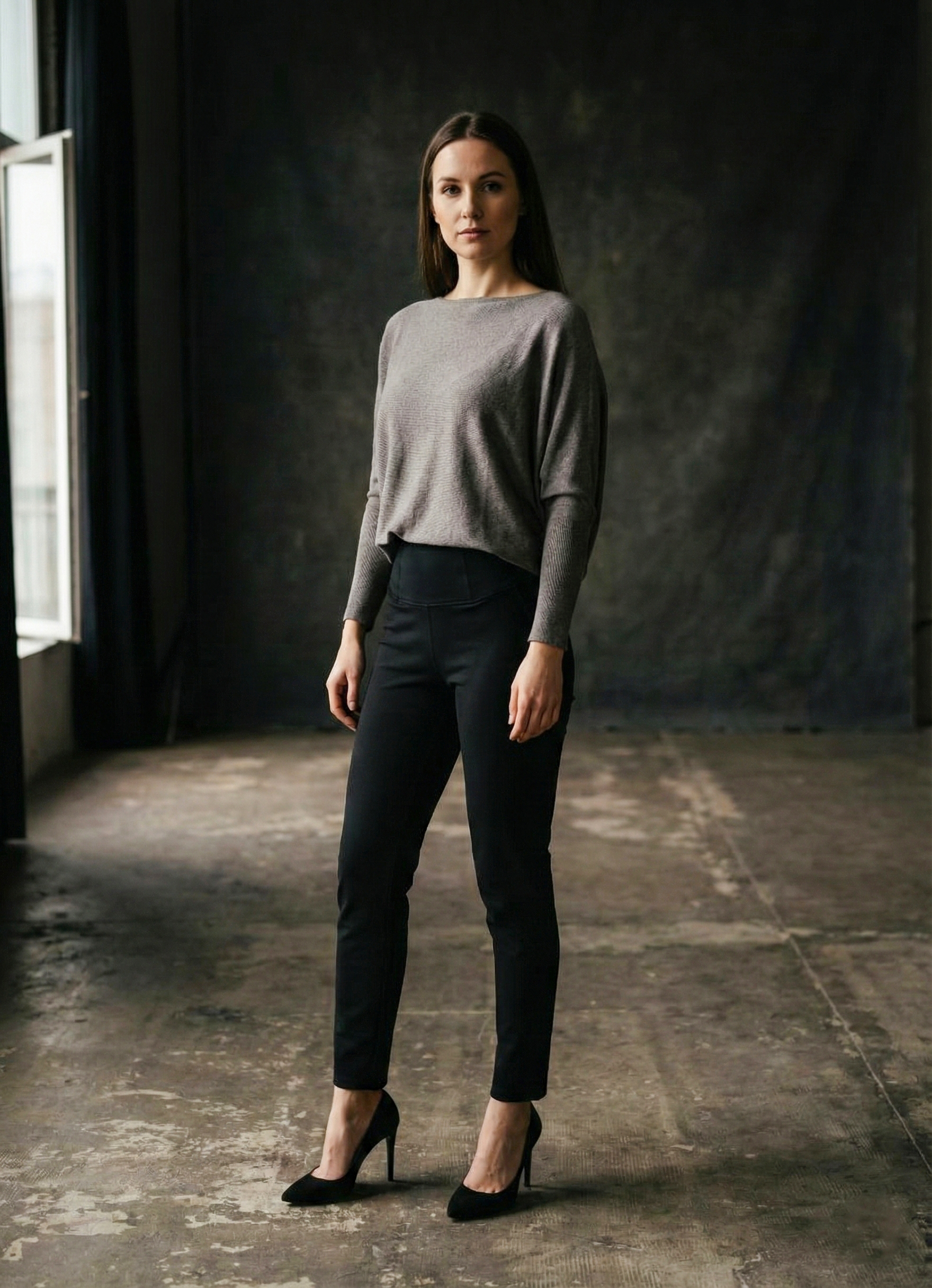 Жіночий трикотажний светр з ефектом "кажана" - це модний і зручний варіант светра, який має особливу посадку рукавів, що нагадує крила кажана. Цей стильний елемент додає светру особливий шарм та оригінальність. Светр з ефектом "кажана" зазвичай має широкий і вільний силует, який облягає плечі і груди, а потім розширюється донизу, створюючи ефект об'ємних рукавів. Рукави починаються від верхніх точок плечей і спускаються вниз, створюючи ефект кажанів або напівкрил. Такий дизайн надає светру легкість та невимушеність.